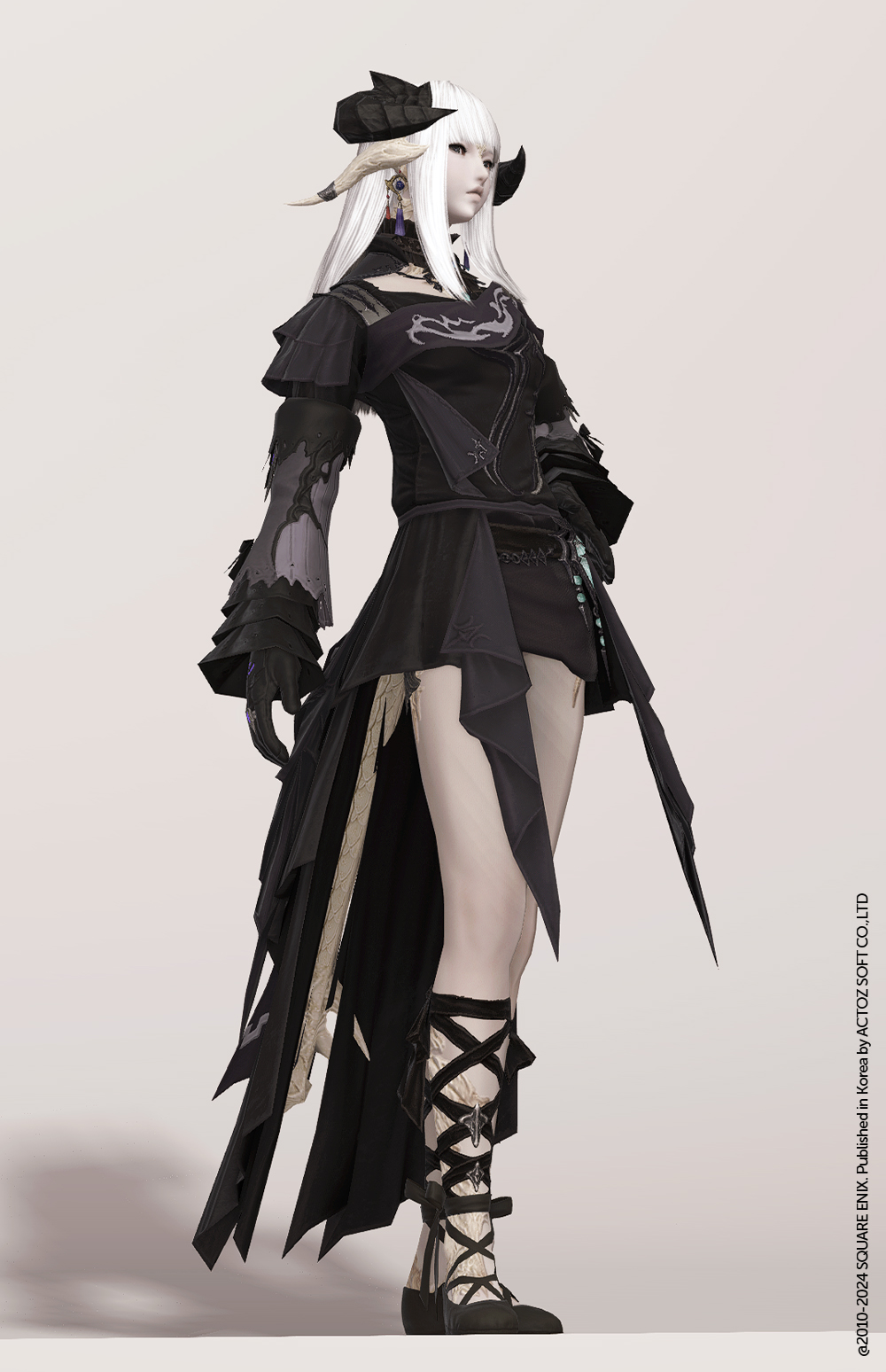팔부분을 덮는 장비를 매치해 소매의 모양을 바꾸거나, 하의에 매치한 아이템을 통해 분위기를 바꾸는 등 다양하게 응용할 수 있는 요소가 매력적입니다. 목부분의 크리스탈이 부담스럽다면 섬네일처럼 멋스러운 검은 장식으로 커버할 수 있는 에덴의 아침·자비 목장식을 추가해보세요.