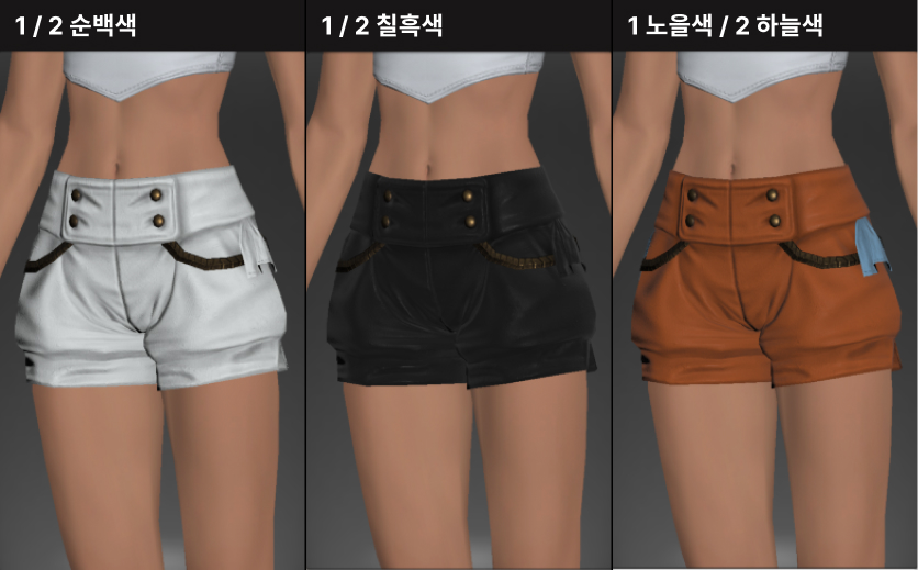 염색1 - 전체적인 바지 / 염색 2 - 옆면의 장식 천