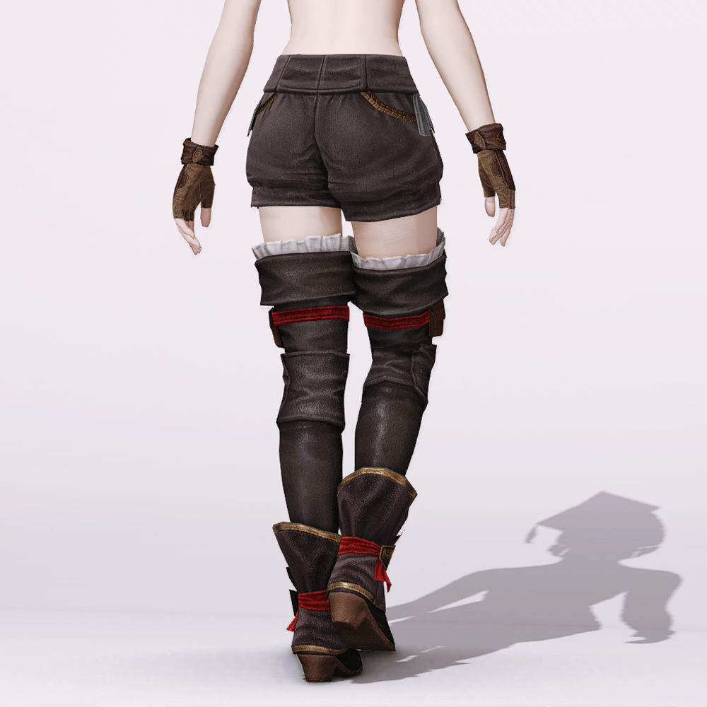 통 넓은 반바지의 끝단을 딱 붙게 스타일링한 바지입니다. 허벅지를 시원하게 드러내는 동시에 블루머나 드로워즈같은 라인을 만드는 점이 독특한 포인트. 허리부분을 두께감 있게 잡아 단추와 끈으로 심플하게 장식해 단독으로 보아도 심심해보이진 않습니다. 위아래로 선이 깔끔하게 마무리되어, 큰 제약 없이 이것저것 다른 의상들을 매치해 볼 수 있는 것이 제일 큰 장점.