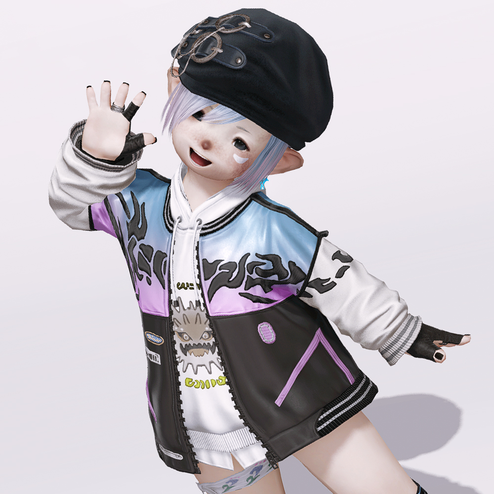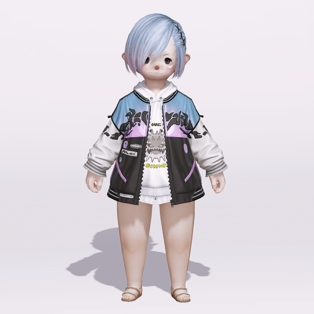 투톤 배색에 그라데이션을 가미한 외투가 독특한 매력을 선사하는 상의입니다. 특유의 광택이 도는 천을 사용해 배색을 두었으며, 그 위로 서로의 컬러를 사용한 자수장식과 와펜 등으로 캐주얼한 감각을 살렸습니다. 귀여운 가시 봄 일러스트가 레터링과 함께 인쇄된 후드를 겹쳐 입었으며, 의상의 시보리 밑으로 삐져나온 셔츠자락이 캐주얼함에 좀 더 가산점을 더합니다. 엉덩이까지 덮는 넉넉한 길이감으로, 딱 달라붙거나 퍼지는 스타일도, 길거나 짧은 스타일도 무난하게 소화하는 것이 최고의 장점입니다.