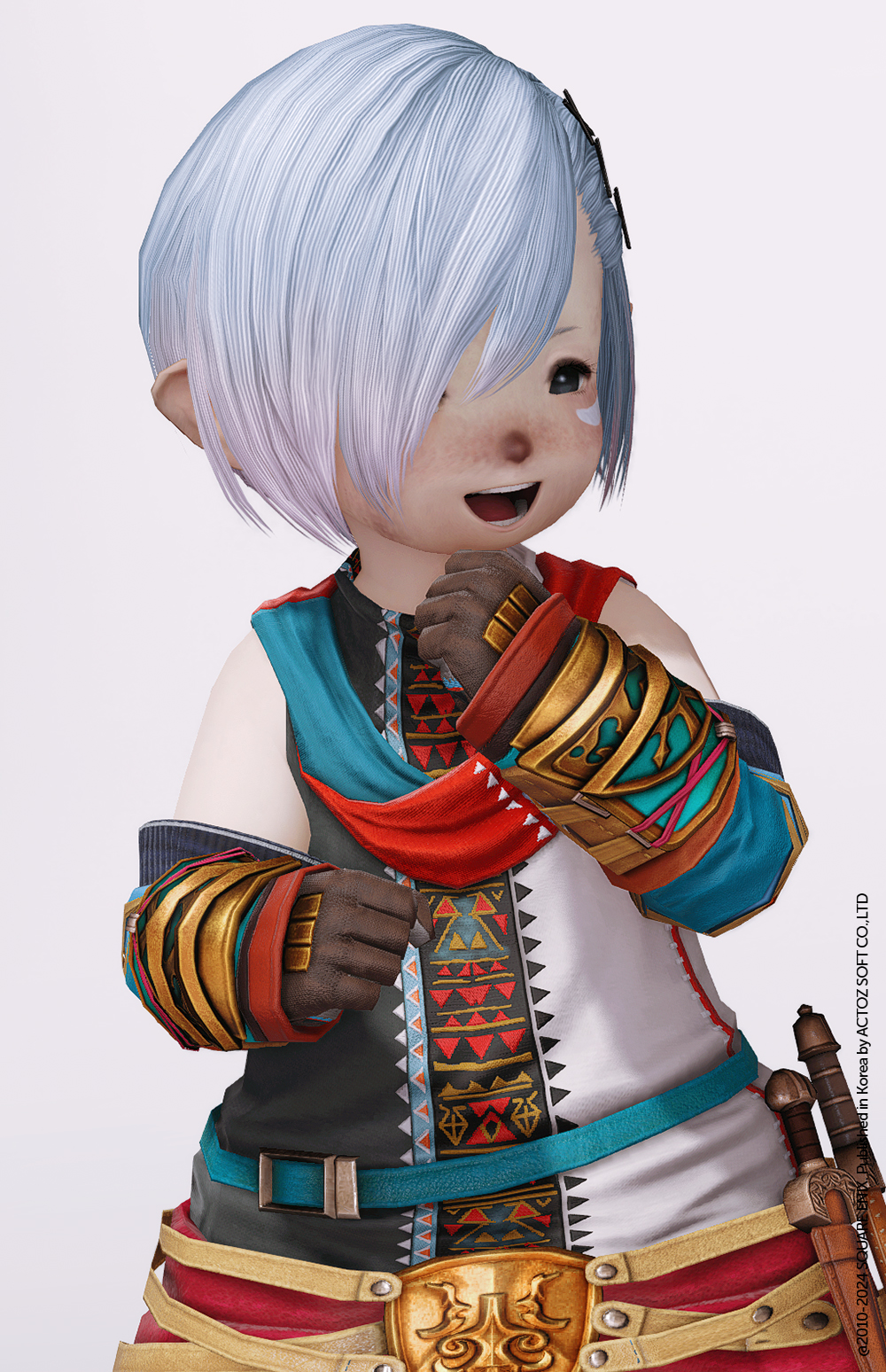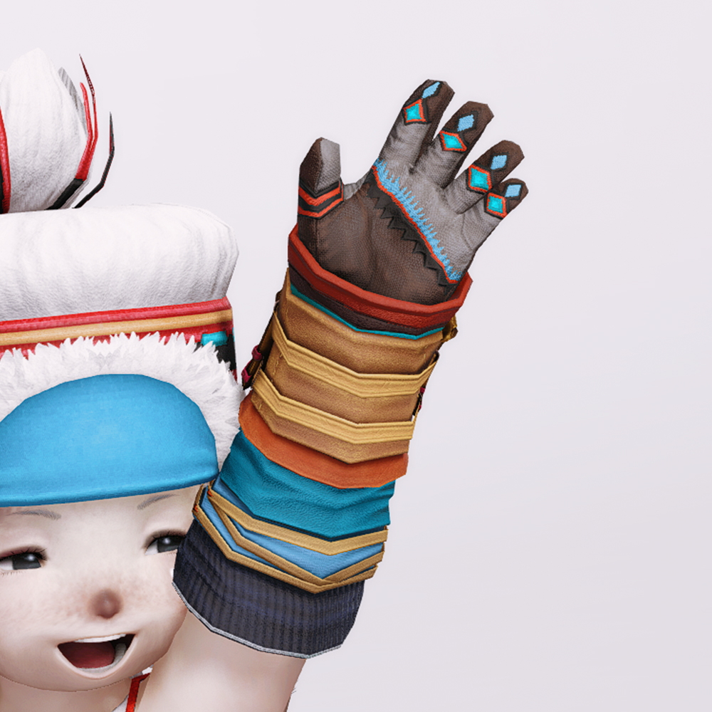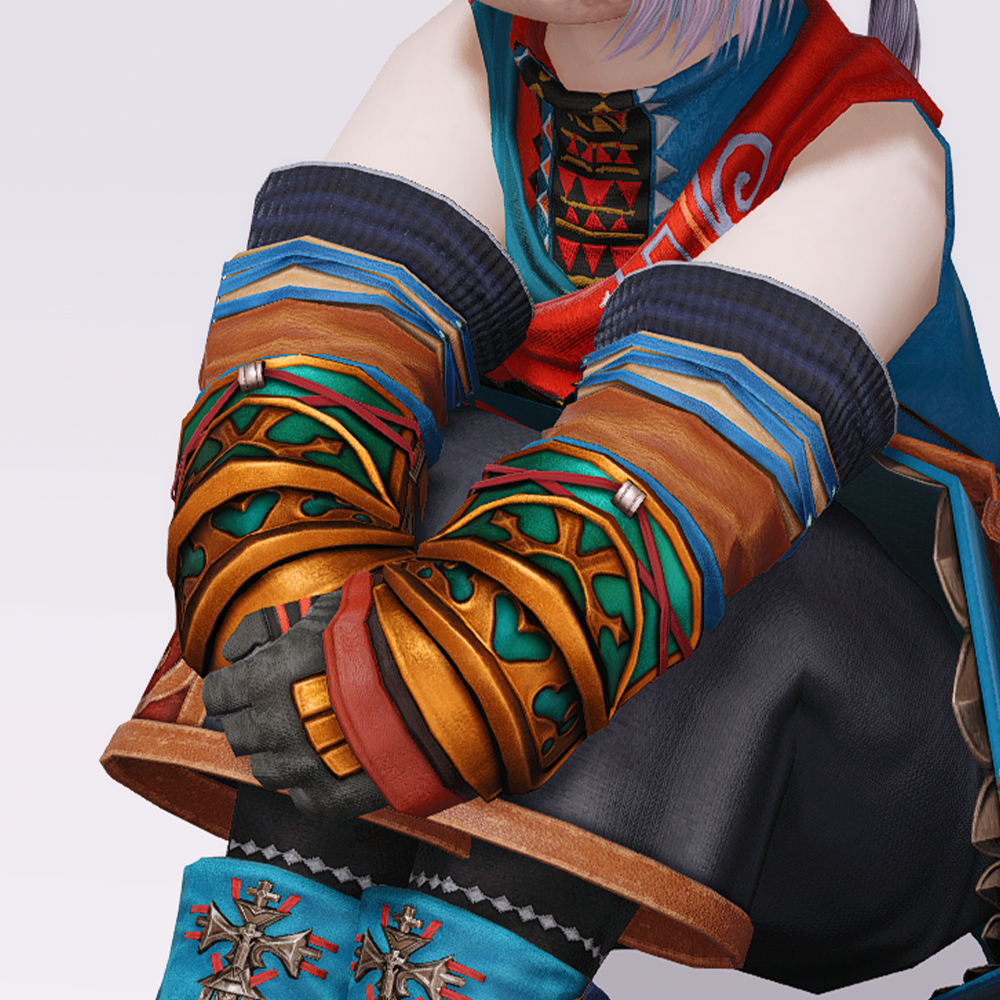 든든한 금속 손목 보호대와 다양한 색으로 이루어진 토시가 어우러진 팔 보호대입니다. 에오르제아에서 볼 수 있는 팔 장비 중에 가장 화려한 칼라를 가지고 있을 아이템으로, 전체적으로 화려한 룩에 조합하기 좋겠습니다. 손가락이 맞닿는 부분에 있는 귀여운 마름모 장식도 잊지마세요! 큼지막하고 화려한 패턴의 금속 보호대가 어울리는 룩이라면 볼드한 포인트로 삼기 좋을 것 같습니다.