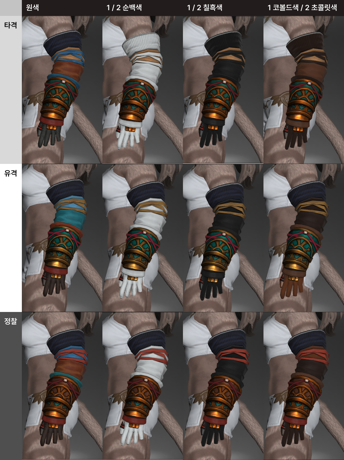 염색1 - 좀더 큰 면적의 장갑/ 염색2 - 직업마다 염색되는 부위가 상이함
