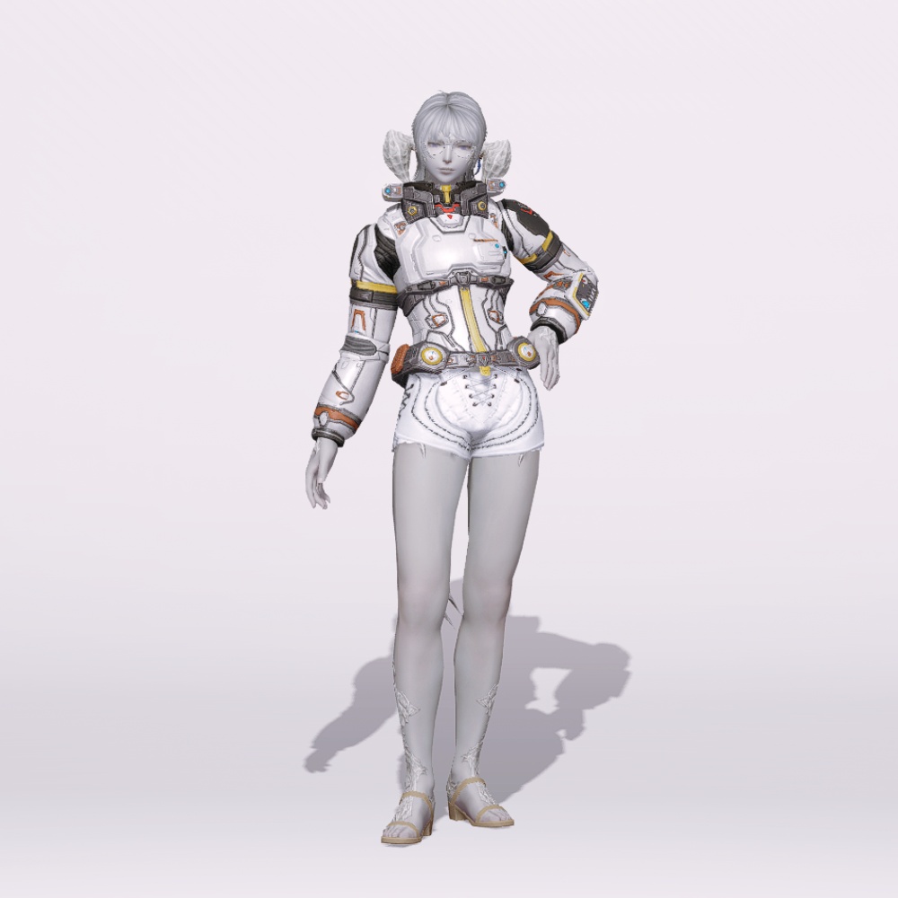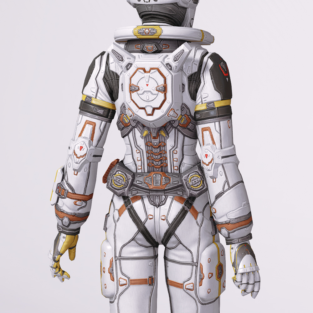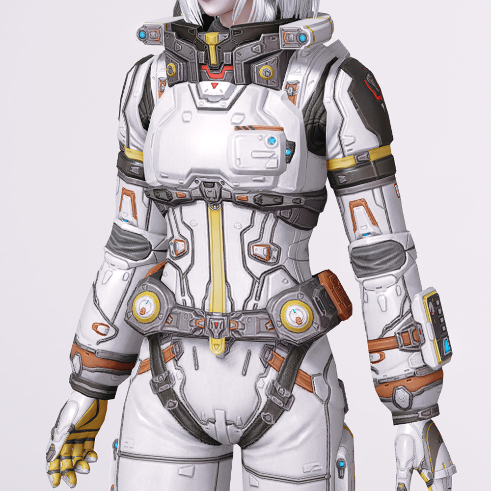 도움이 필요해 보이면 어디든지 뛰어가는 모험가, 이번엔 달나라까지 그 발걸음을 향합니다. 우주에서도 그 역량을 온전히 펼칠 수 있도록 보호와 기능성에 치중된 모양새입니다. 갑옷과 비슷하게 몸 전체를 꽁꽁 감싸지만 동시에 기동성은 유지하였으며, 금속판을 두드려 만드는 것이 아닌 마치 거푸집 등에서 찍어낸 조각을 짜 맞춘듯한 것이 고유의 특징. 기술력의 집약체 같은 느낌이 듬뿍 묻어납니다. 신체를 보호하는 것과 보조하는 것들을 감추기보단 되려 외적으로 드러내는 동시에 그 특유의 투박함에서 아름다움을 끄집어낸 만큼, 주는 분위기가 어느정도 고정된 점이 아쉬울지도 모르겠습니다.