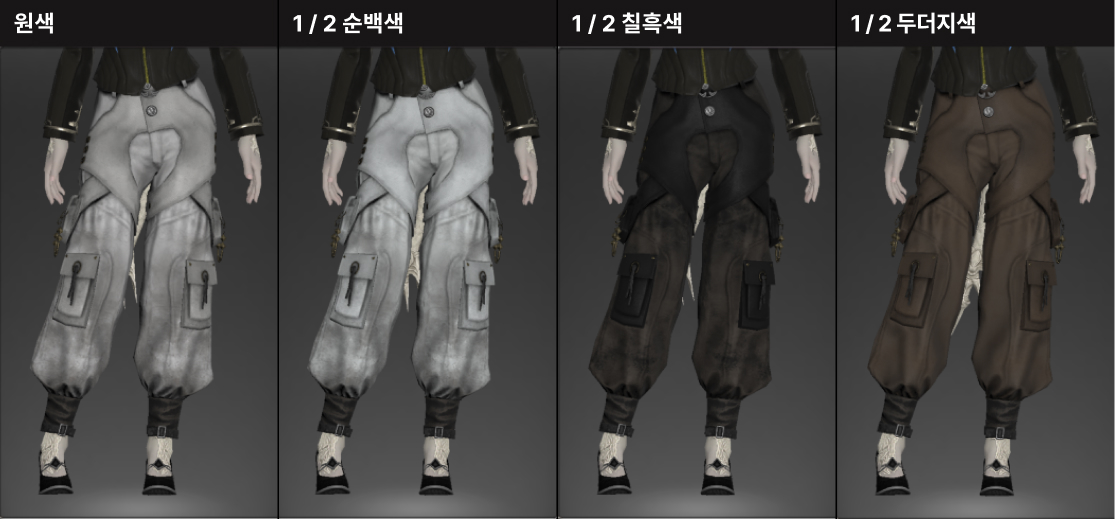 염색1 - 바지 천 / 염색2 - 가죽 보호대