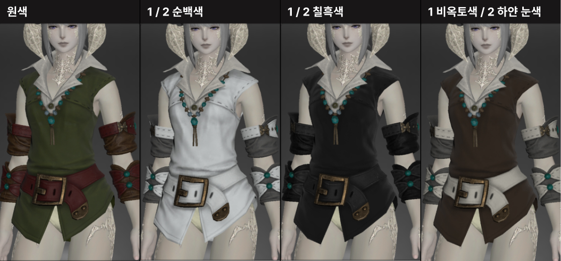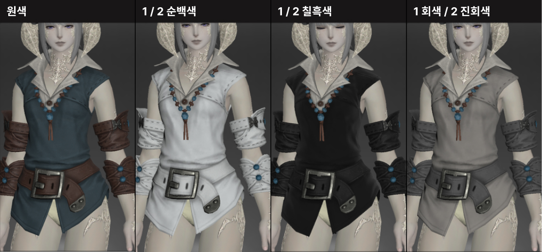 염색1 - 전체적인 상의 천 / 염색2 - 벨트와 팔 보호대