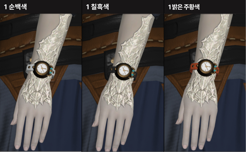 염색1 - 왼손의 시계 줄 / 염색2 - 오른손의 장갑 천