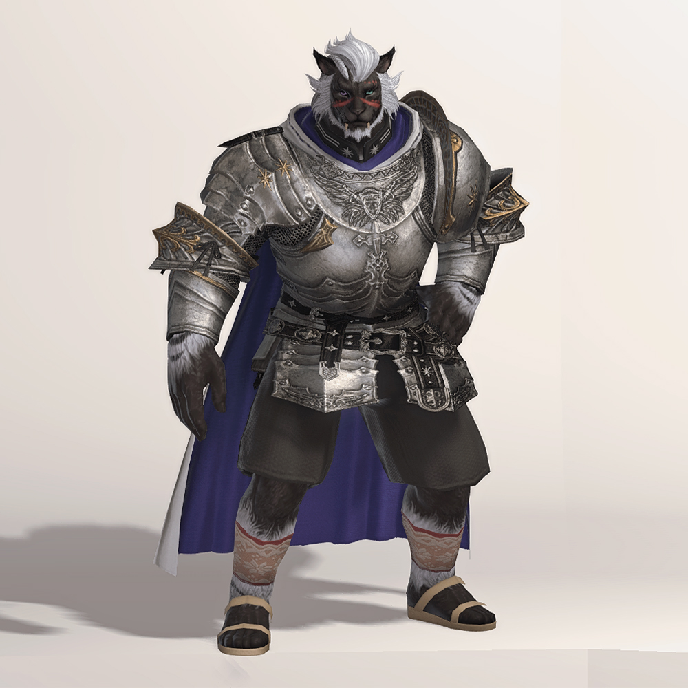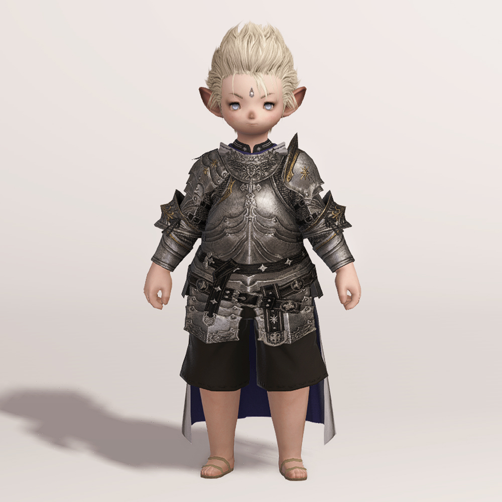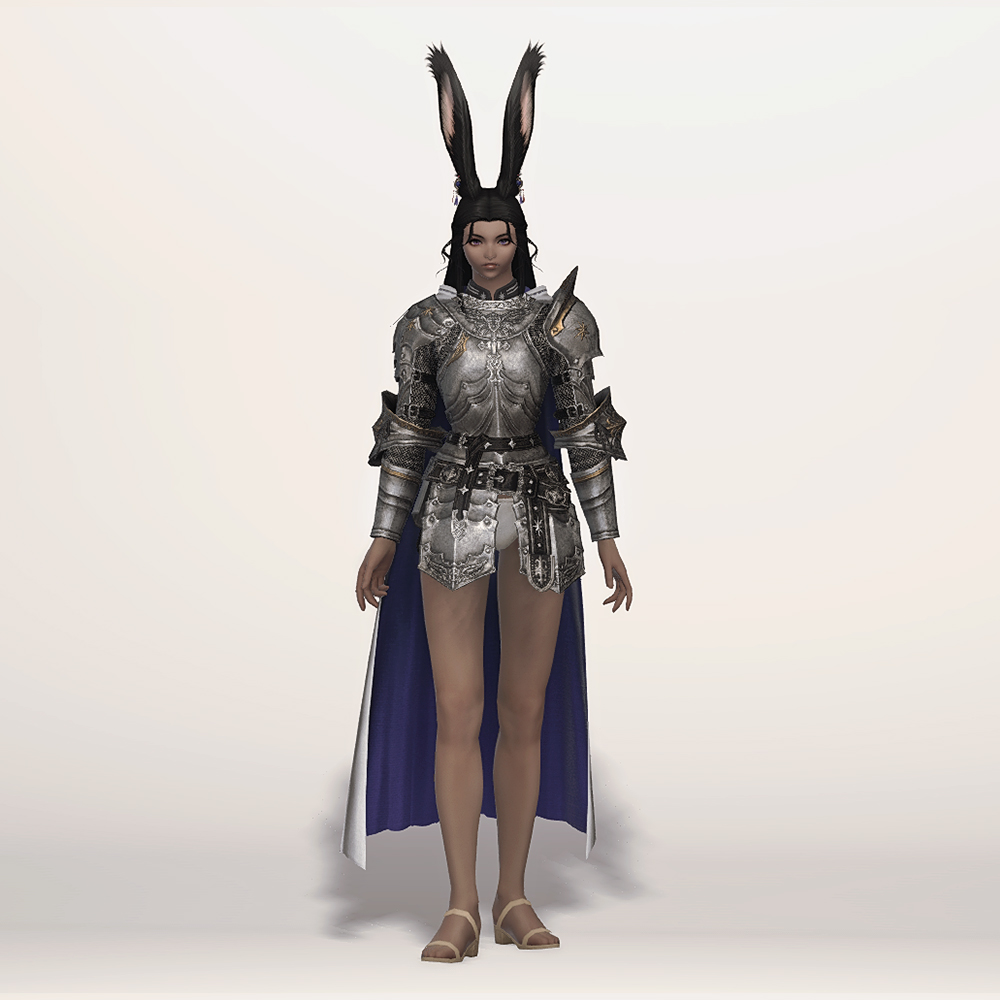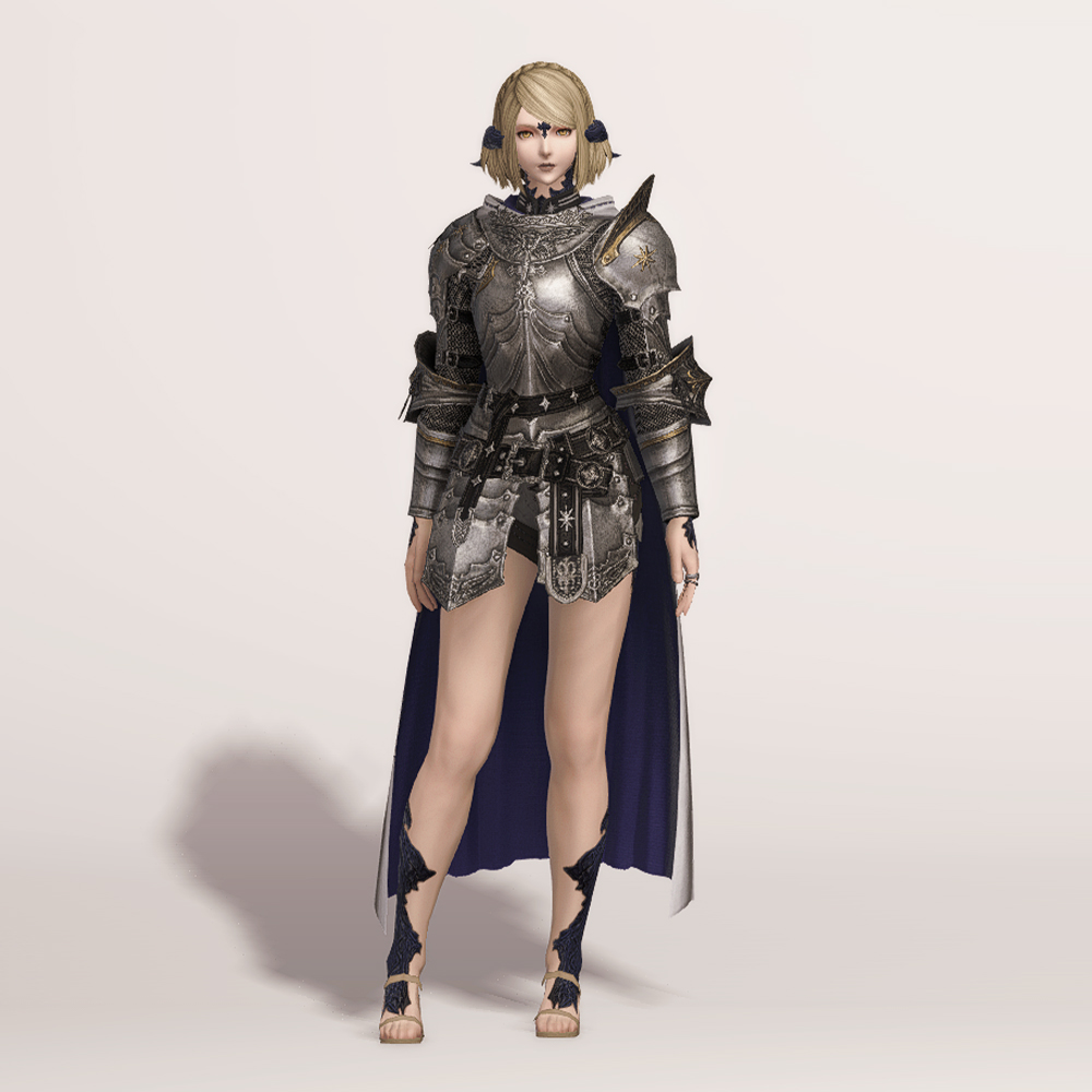 갑주입니다. 빛의 전사가 시간의 흐름을 따라 여정의 끝에 도달했듯, 갑주 또한 끝내 정석적인 철판 갑옷으로 발전했습니다. 비대칭 견갑과 문장이 그려진 망토로 포인트를 주었습니다. 갑옷에 왜 저리 긴 망토를 달았는지, 흉갑은 왜 겨드랑이를 보호하지 못하는지, 벨트는 왜 두 개씩이나 찼는지 따위는 묻지 마세요. 중무장한 기사 앞에서 어리석은 질문을 던지지 않는 것이 지혜이고, 우리는 충분히 현명한 사람들이니까. -모래늪에서 큰뿔 염소 스테이크 정식을 먹던 기사-