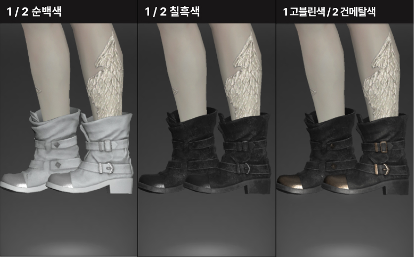 염색1 - 앞코와 벨트 금속장식 / 염색2 - 전체적인 신발천