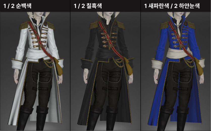 직군마다 외투 염색부위와 와이셔츠색 및 벨트색, 주머니 색이 상이합니다.