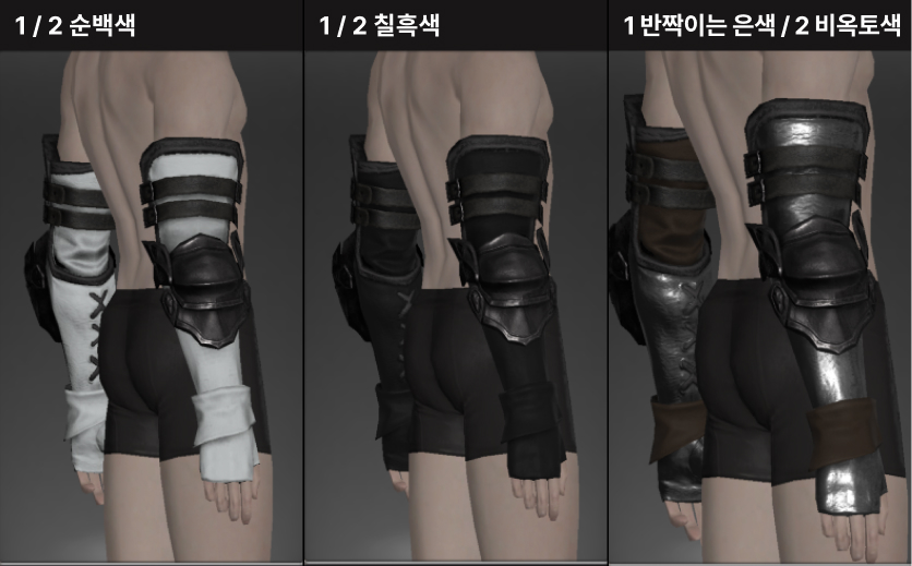 1염색 - 전체적인 팔보호구 / 2염색 - 팔안쪽과 팔목 가죽보호대