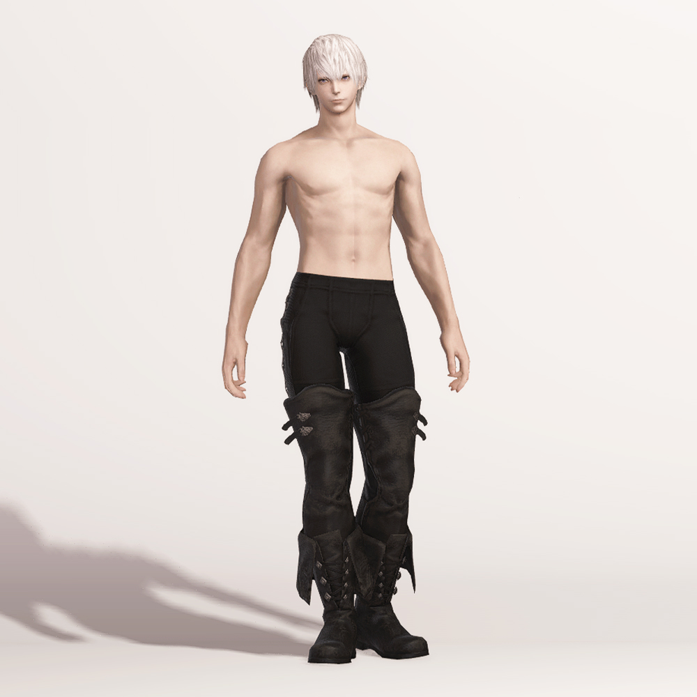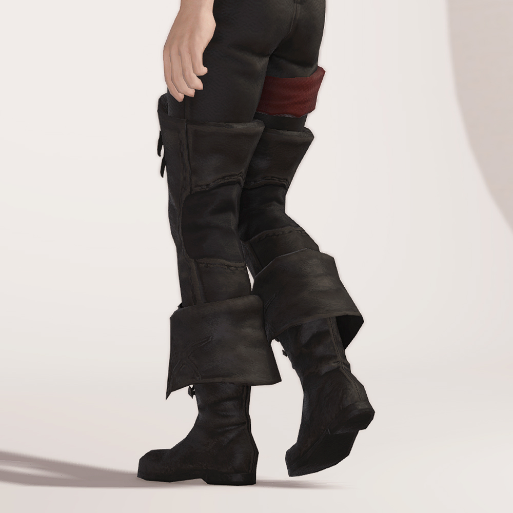 새벽의 현인 산크레드가 창천의 이슈가르드에서 선보인 신발입니다. 낮은 굽의 무릎 밑까지 올라오는 장화에 더해, 허벅지까지 올라오는 부분이 같이 붙어있습니다. 뭐, 부츠를 두 개 신은 사람은 일을 잘 한다는 말도 있으니 그것을 노린 디자인 일 지도 모릅니다. 허벅지에는 외피 안쪽으로 가죽끈을 끼워 어느 정도 부츠 통 사이즈를 조절할 수 있도록 해 둔듯한 장식이 달려있습니다. 가족을 꿰맨 세세한 디테일들이 살아있는 점은 덤. 여러모로 샬레이안 풍의 패션 스타일이 돋보이는 듯 합니다.