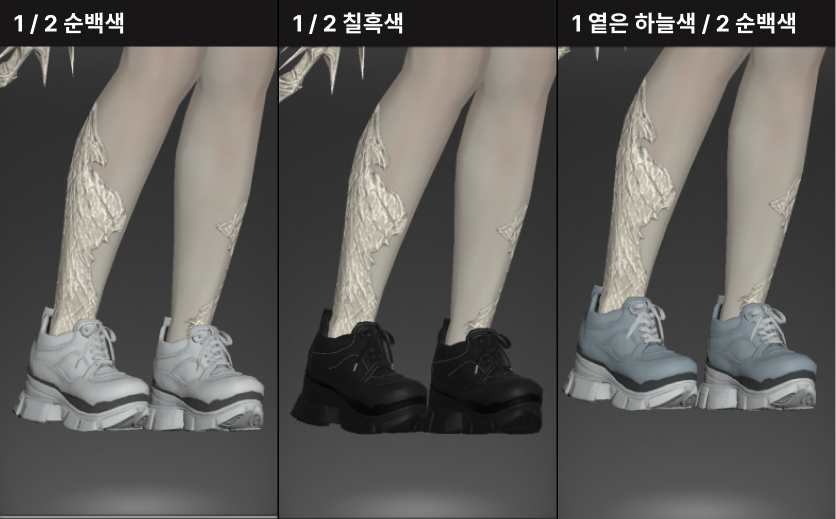 1염색 - 신발 천 / 2염색 - 슈레이스(신발끈)과 밑창부분