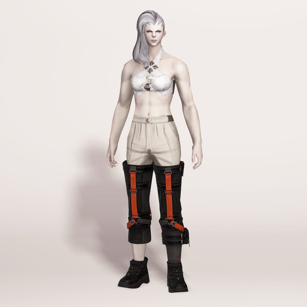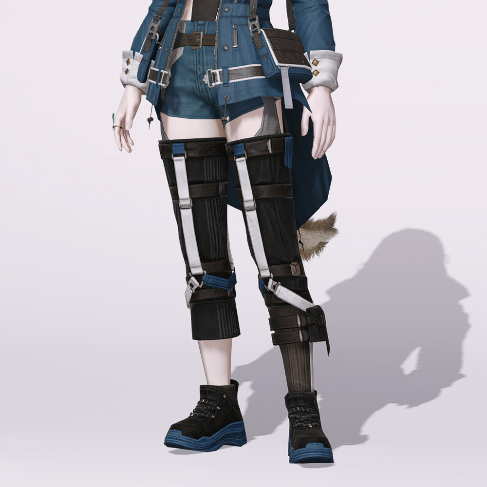 스포티한 매력을 가진 허벅지 장화 장식을 곁들인 운동화입니다. 중앙에 오는 두툼한 스트랩 장식이 핵심포인트로, 무슨 옷을 입던 이것하나로 스포티한 근미래룩의 느낌을 더할 수 있습니다. 기장이 길어 벨트 부분만 살리고 나머지를 먹게 연출하거나 섬네일 모델처럼 절대영역을 강조해서 입는 것도 매력적인 선택이 될 것 입니다.