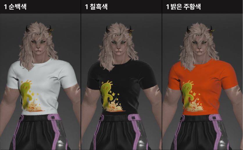1염색 - 티셔츠 프린트를 제외한 티셔츠 색이 변경됩니다.