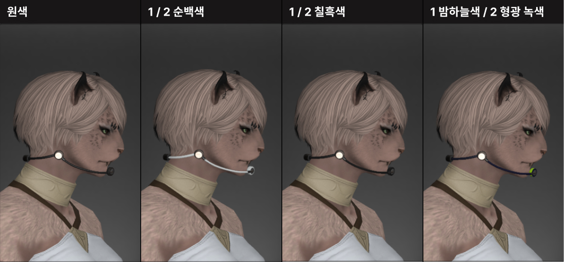 1염색 - 헤드셋 라인과 테두리 장식 / 2염색 - 마이크 스피커쪽 스펀지