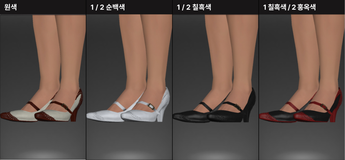 몇 안 되는 평범하고 인게임에서 얻기 쉬운 예쁜 구두입니다. 파판14의 하이힐들은 대부분 부츠형으로 아쉬운 경우가 많았으며, 그나마 괜찮은 하이힐들은 죄다 크리스탈샵에 있어 따로 하이힐 아이템이 없으신 경우 하나 구비하시는 것을 추천드립니다. 다양한 코디에 활용할 수 있는 매력적인 신발이며 녹슨 빨간색으로 염색시 구분이 거의 없어져 깔끔한 레드 하이힐 구두로 착용가능합니다.