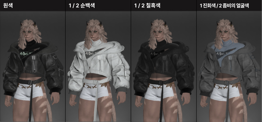 1염색 - 아우터의 외피부분 / 2염색 - 아우터의 포인트 칼라 + 내의의 패턴 부분