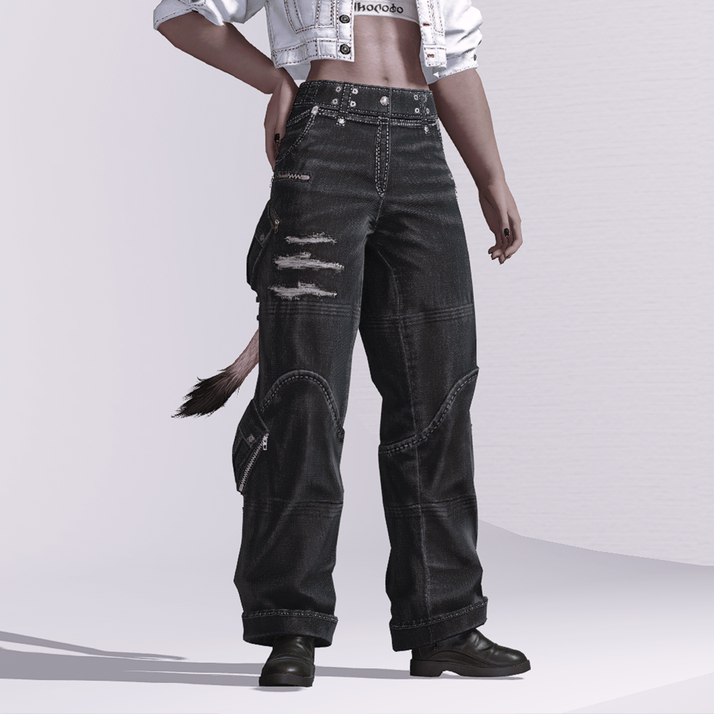 사이드 주머니로 매력적인 실루엣을 만든 와이드 카고팬츠입니다. 벨트가 없어 깔끔하고 허리핏이 딱떨어져 상의에 노출이 있거나 허리 강조 코디에 사용하기 좋습니다. 청바지 텍스쳐상 카고색이나 어두운 청색등 어두운 염료색이 잘받는 것 같습니다. 와이드 바지상 허벅지가 두툼한 종족이 좀더 핏이 사는 편입니다. 염색부위가 크게 차이나지 않아 C1/C2 중 어느 것을 살지 깊이 고민하지 않아도 되겠습니다.