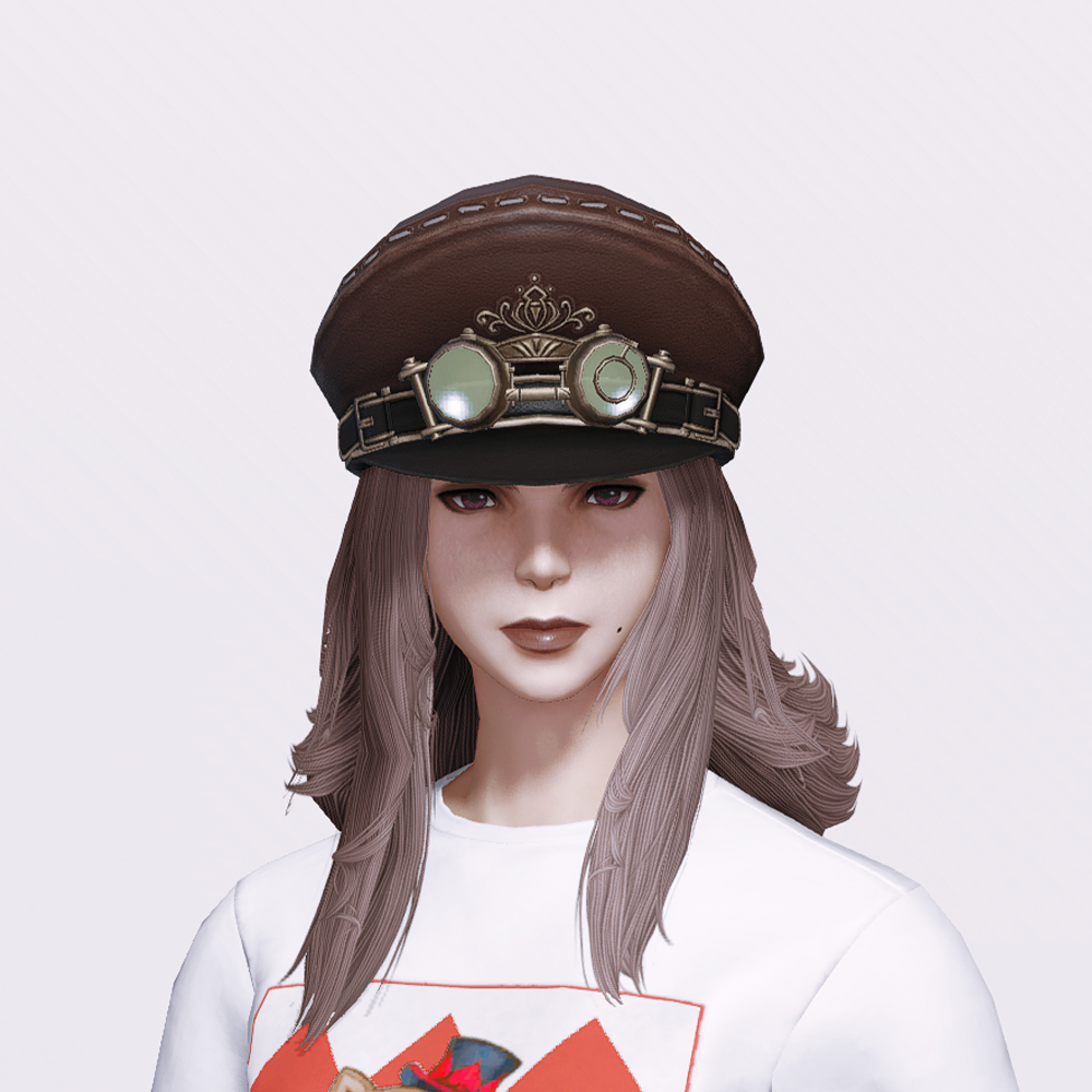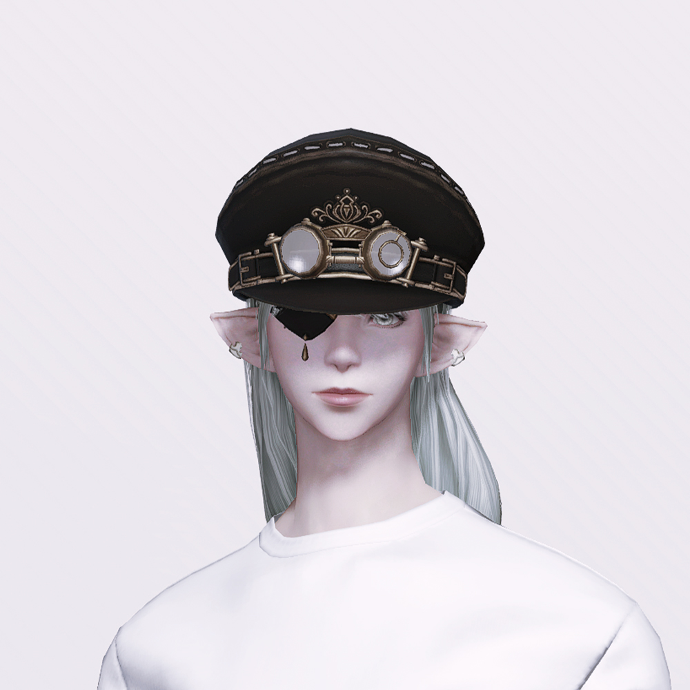 전체적인 디자인이나 핏이 너무 예쁘게 잘 나와 다양하게 활용할 수 있는 매력적인 스팀펑크풍의 모자입니다. 스티치와 고급스러우면서도 디테일한 금장 장식과 고글이 눈에 띄며 보는 사람을 기준으로 오른쪽에 검은색 안대가 있습니다. 깔끔한 마감과 금장장식으로 인해 예복스타일의 코디와 매치하기 좋습니다.