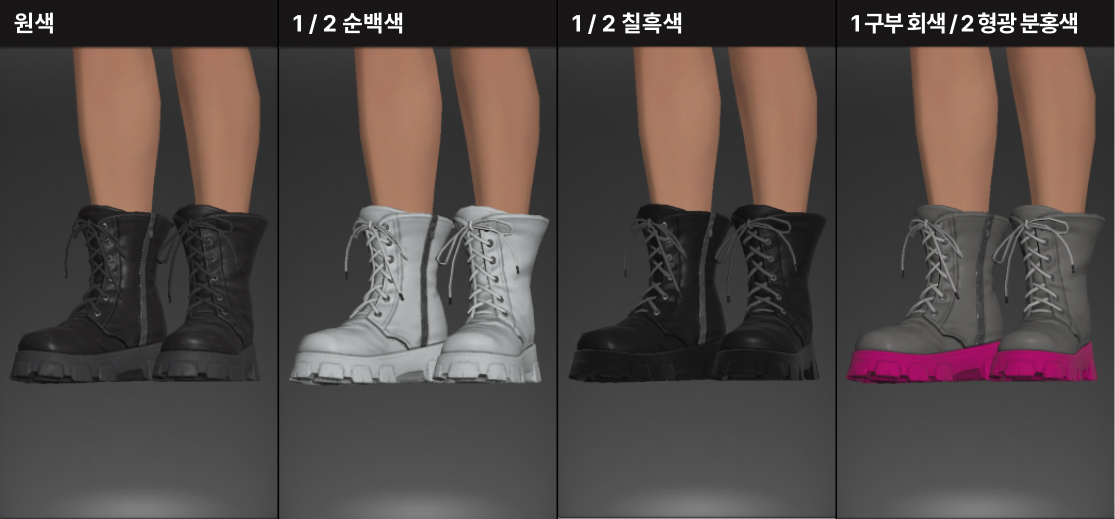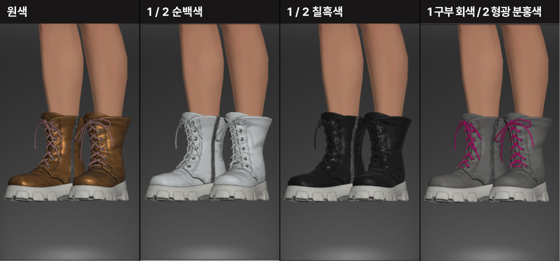 1염색 - 장화의 가죽 부분 / 2염색 - 슈레이스(신발끈)