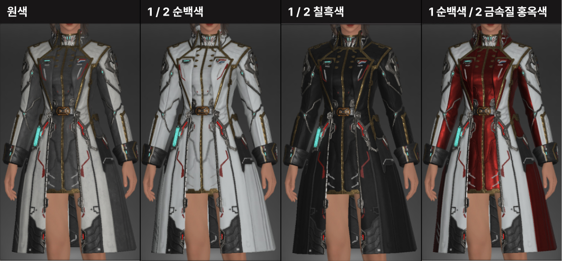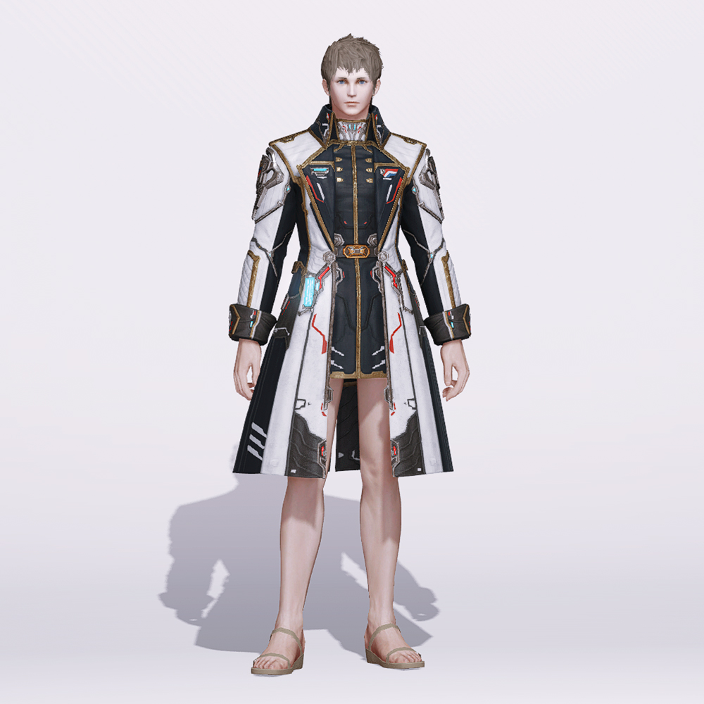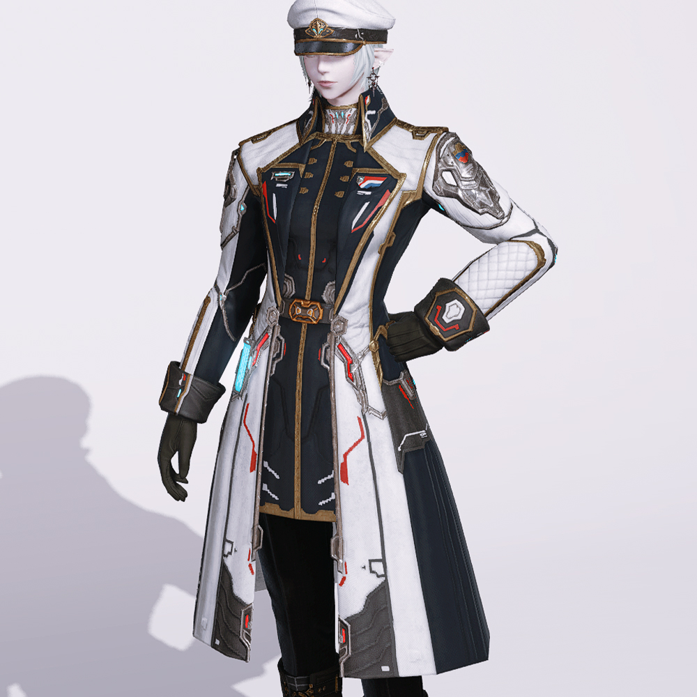 염색불가 야전사령관의 아쉬움을 달래준 권위있는 코트. 고귀한 인상을 더하기 좋은 크라바트와 높은 깃, 넓은 카라에 핏좋은 코트를 SF식으로 재해석한 모양새입니다. 멋스러운 코트를 좋아하신다면 놓칠 수 없는 외투.