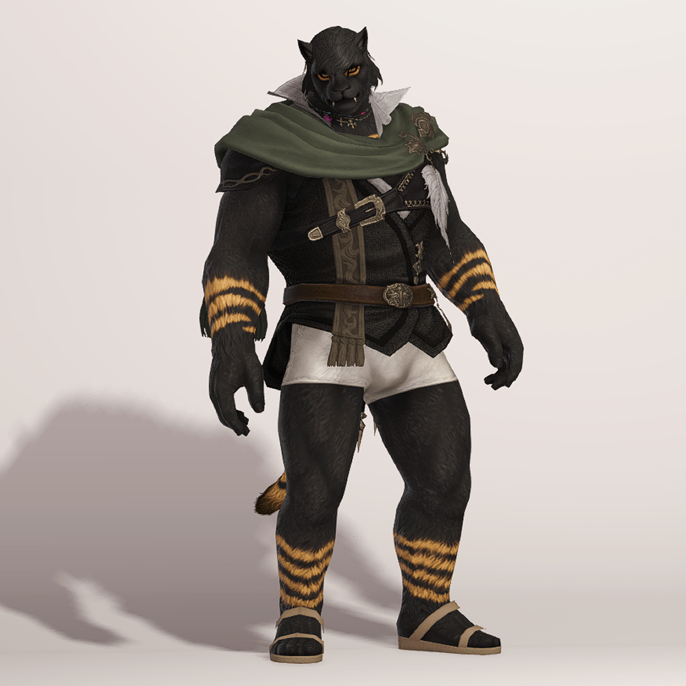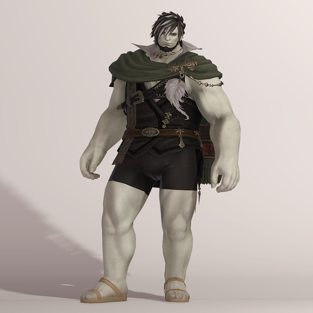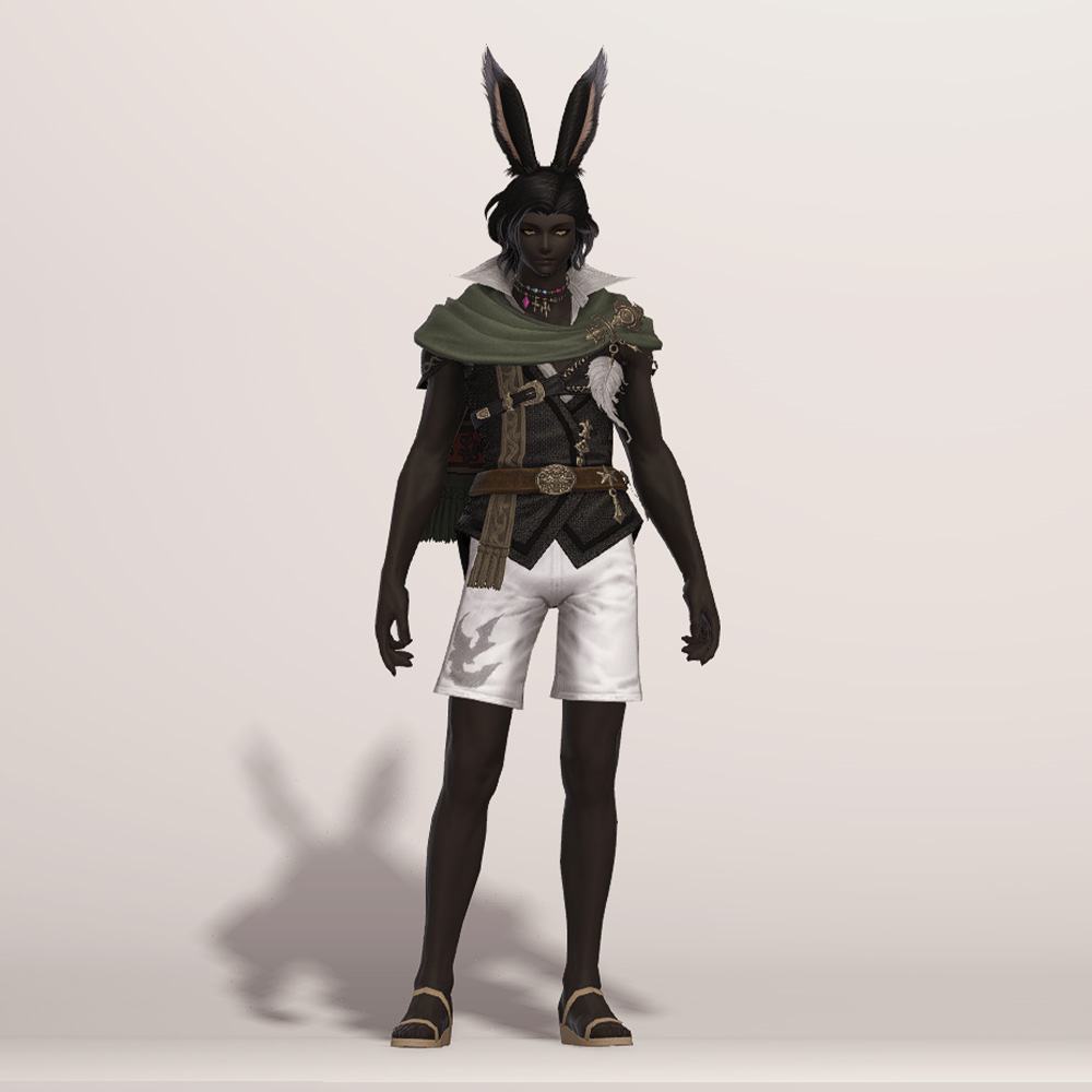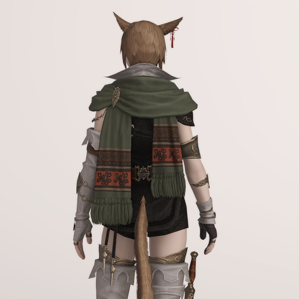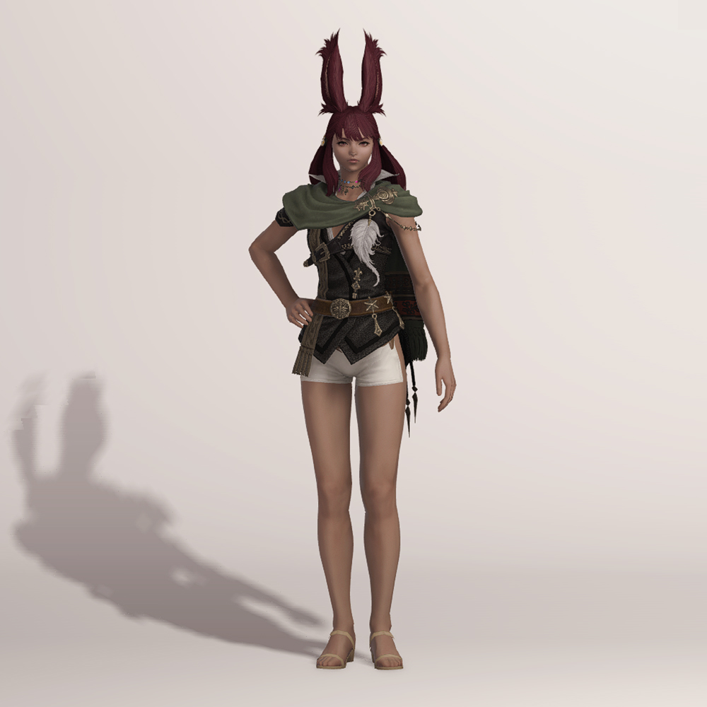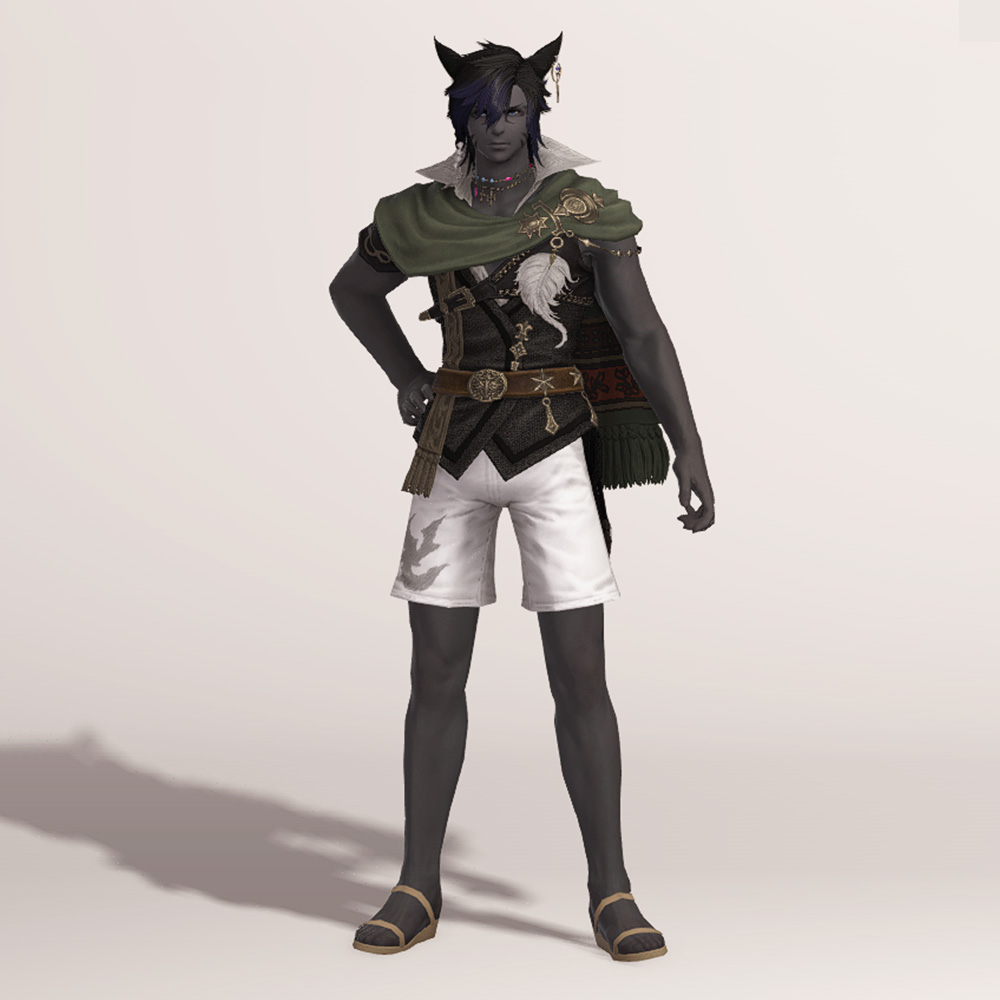 밋밋할 수도 있는 조끼에 금속과 벨트로 포인트를 줬으며, 케이프 머플러의 조합으로 방랑자스러움을 잘 나타낸 음유시인 상의입니다. 오밀조밀한 목걸이와 커다란 깃털은 자칫 옷 전체의 외관을 망칠 수도 있으나 특유의 디자인 덕분에 오히려 귀여운 매력 포인트가 되었습니다.