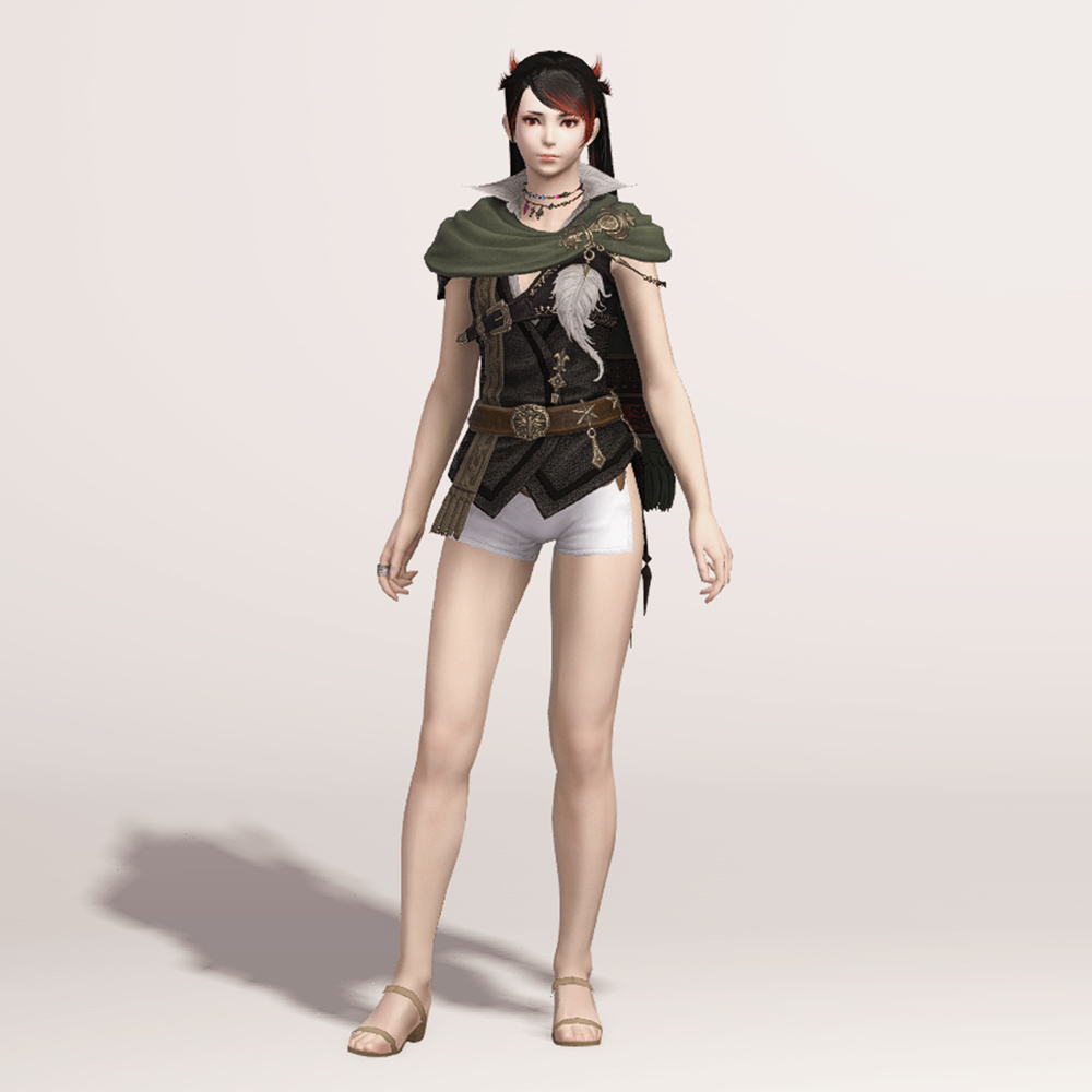 기본 색상이 워낙 잘 나와 염색을 하지 않아도 충분히 예쁘며 하의의 종류와 길이감에 상관없이 모두 다 잘 어울리는 만능 상의입니다. 나무 사이로 햇빛이 잘 드는 숲속에서 촬영하면 숲의 수호자 또는 자유로운 여행을 즐기는 모험가 컨셉의 멋진 스크린샷을 찍을 수 있습니다.