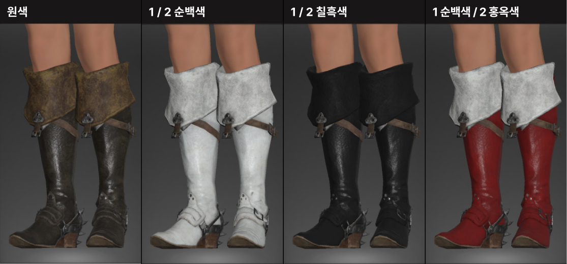 발목 라인 핏이 깔끔하면서도 모험가스러운 디테일들이 곳곳에 더해져 매력적인 장화입니다. 염색시 어두운 색의 가죽 텍스쳐가 남아있어 어두운색 염색을 추천드리지만, 그래도 디테일이 더해진 느낌을 추구한다면 신경쓸만한 정도는 아니라고 생각합니다.