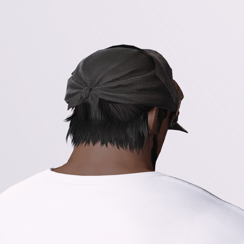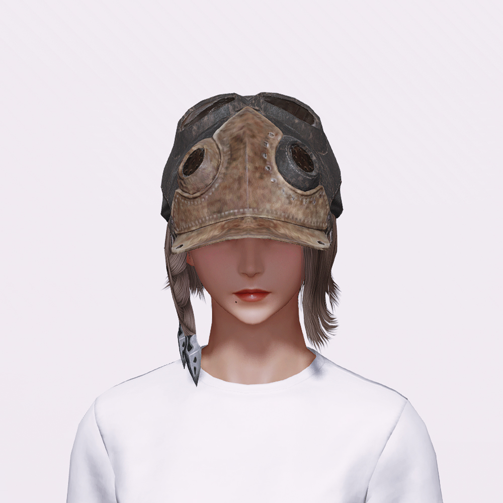 모험가스러운 캡이 달려있고, 후면은 천으로 타이트하게 묶은 매력적인 모자입니다. 남성용 호프마스크와 비슷하게 눈 부분을 보호하듯이 깊게 눌러써 신비로운 분위기를 자아냅니다.
