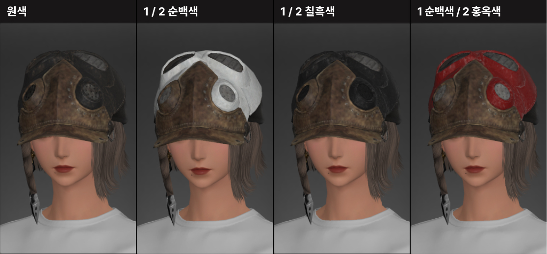 1염색 - 개구리 눈알부분(선명한 발색X) / 2염색 - 기존 모자의 검은색 배색 부분