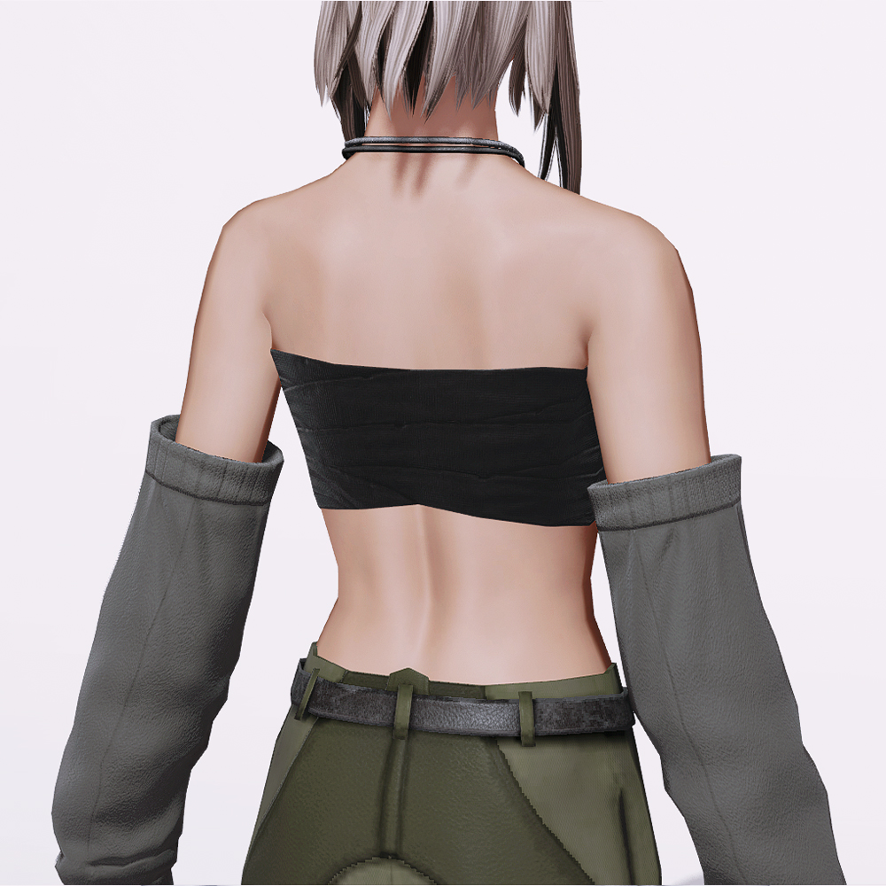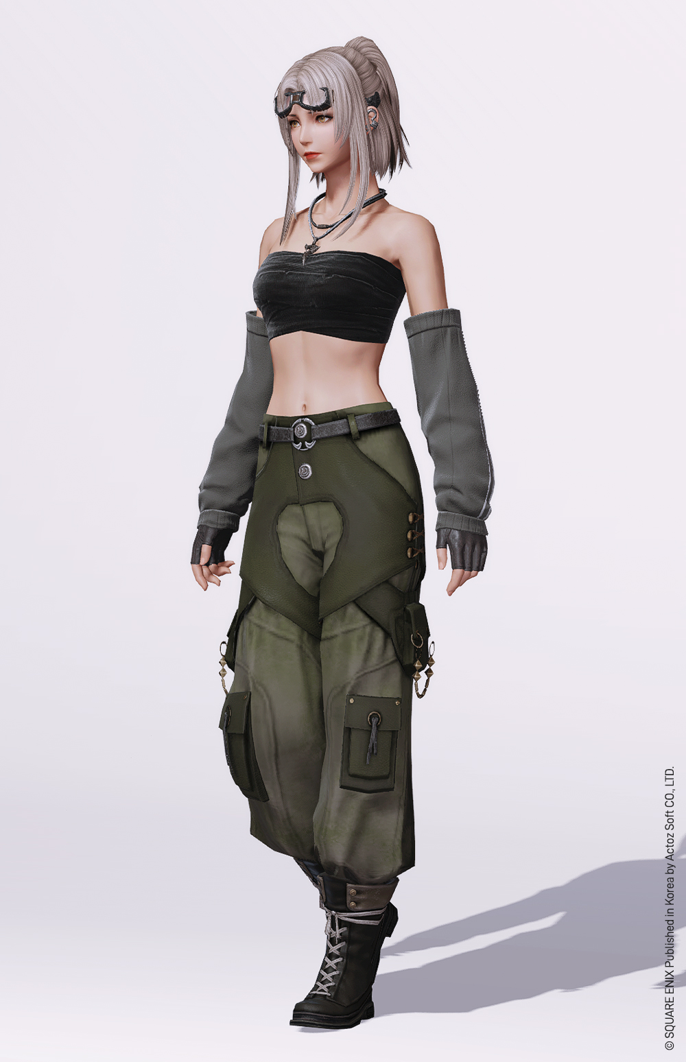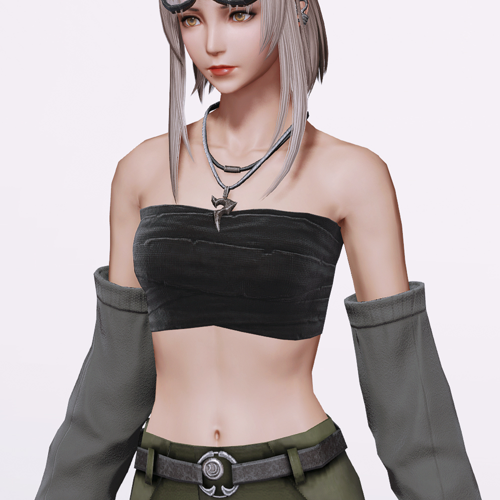 많은 이들이 기다려온 상체를 감싸는 가슴붕대입니다. 상체를 타이트하게 잡아주어 노출이 되는 상체 부분의 실루엣도 꽉 잡아주는 부분이 정말 좋습니다. 크롭티 스타일을 사랑하는 사람들부터 섹시한 룩을 찾는 이들에게 매력적인 선택지가 될 수 밖에 없는 상의죠. 세트인 제련선봉 장치마나 작업복 느낌이 물씬 풍기는 광산선봉 하의등 다양한 느낌의 하의와 매치할 수 있는 다채로운 매력의 상의입니다.