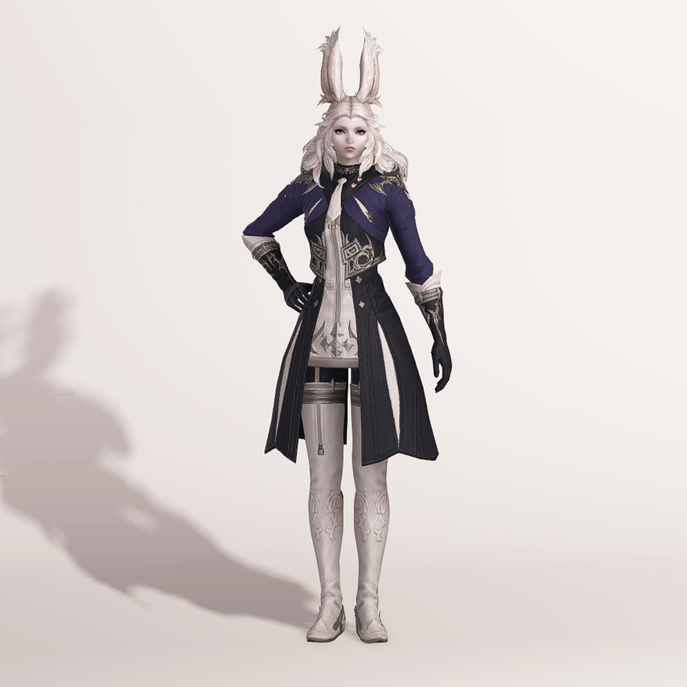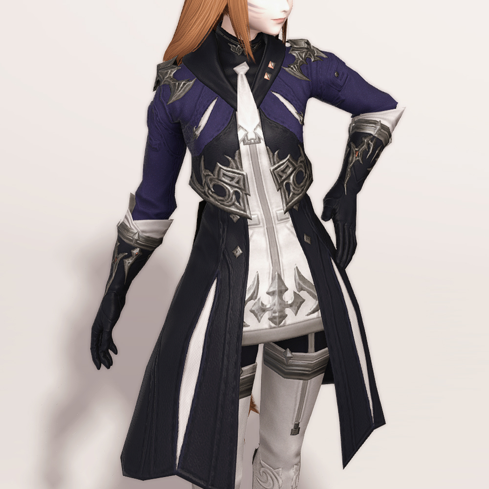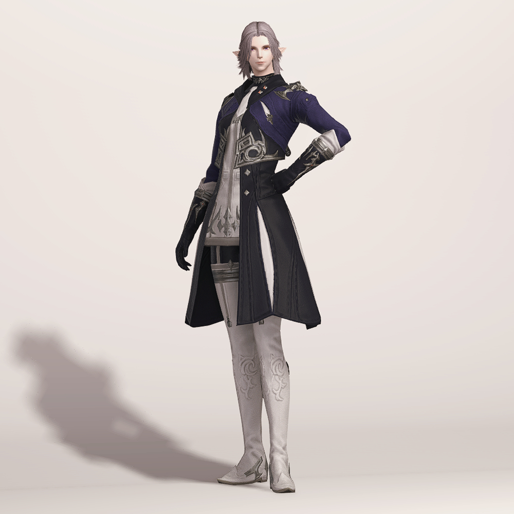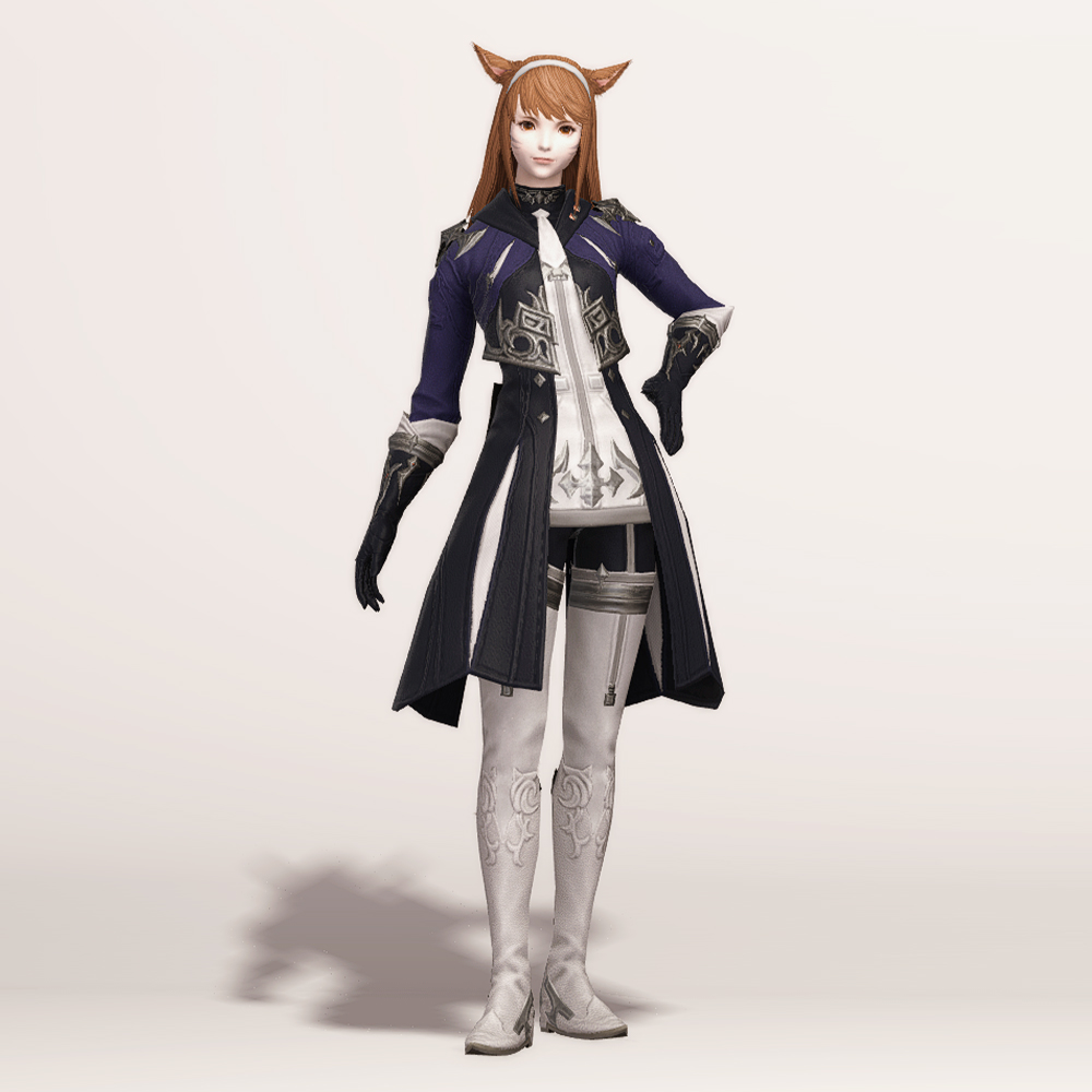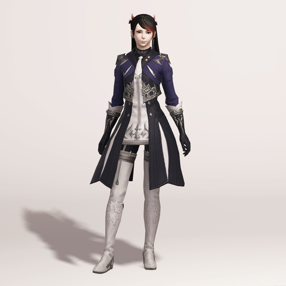 옆에 모험가가 버젓이 서있는데도 불구하고 알피노만 받은 타타루의 수제 옷입니다. 섬세하게 장식된 이너와 부츠, 여기에 볼레로와 A라인의 코트를 조합한 푸른색 자켓이 인상적이며, 짧은 기장의 넥타이가 포인트입니다. 블루포인트를 좋아하시는 분들은 격식 있는 정장 느낌으로 착용 가능해 추천드립니다.