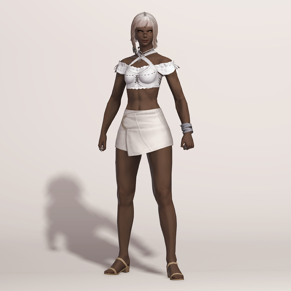 동양의 판타지를 현대의 감각으로 재해석해 깔끔한 흰색으로 마무리한 동방풍의 짧은 치마입니다.