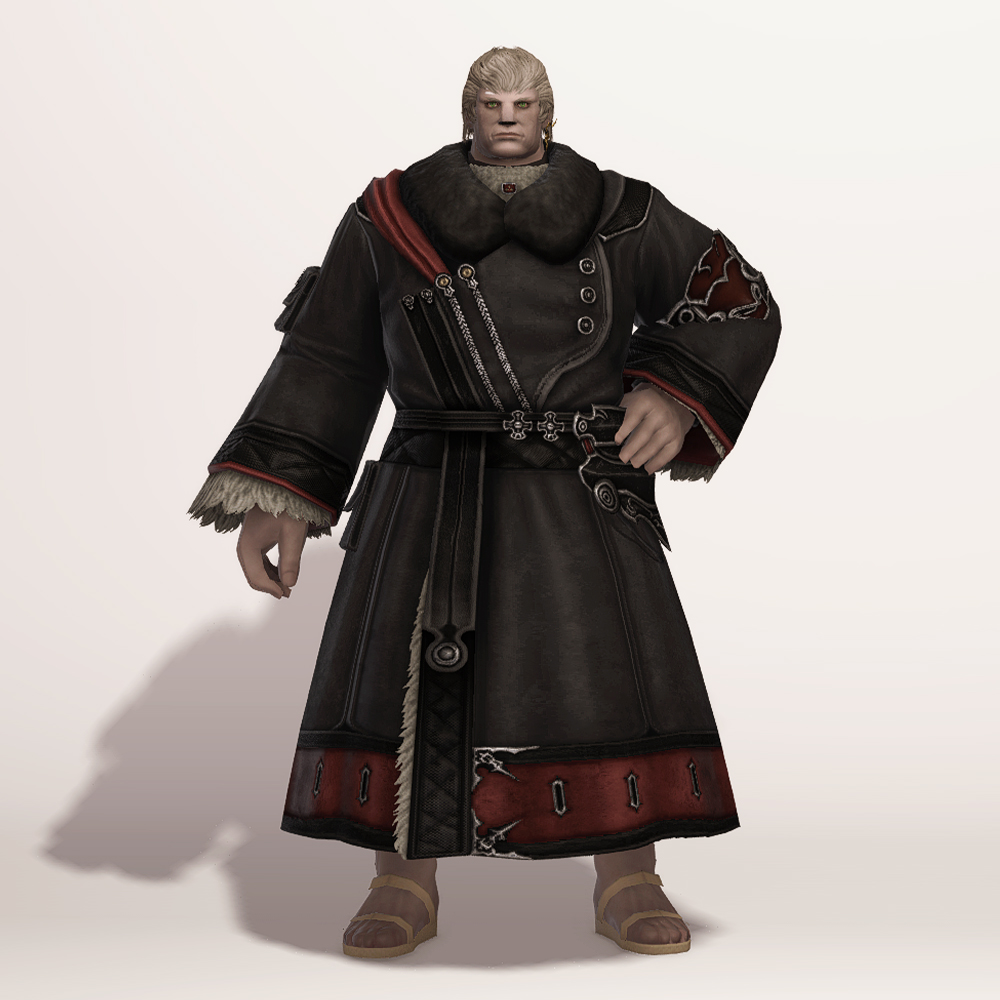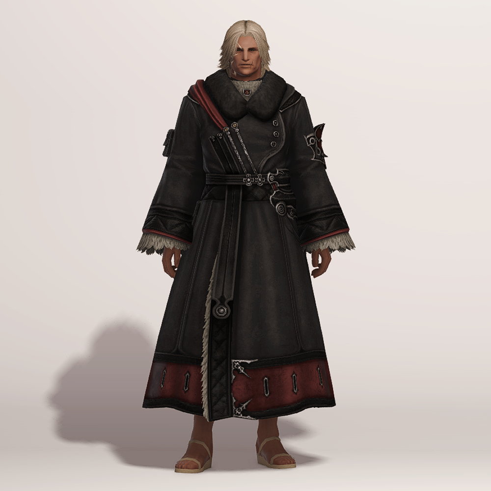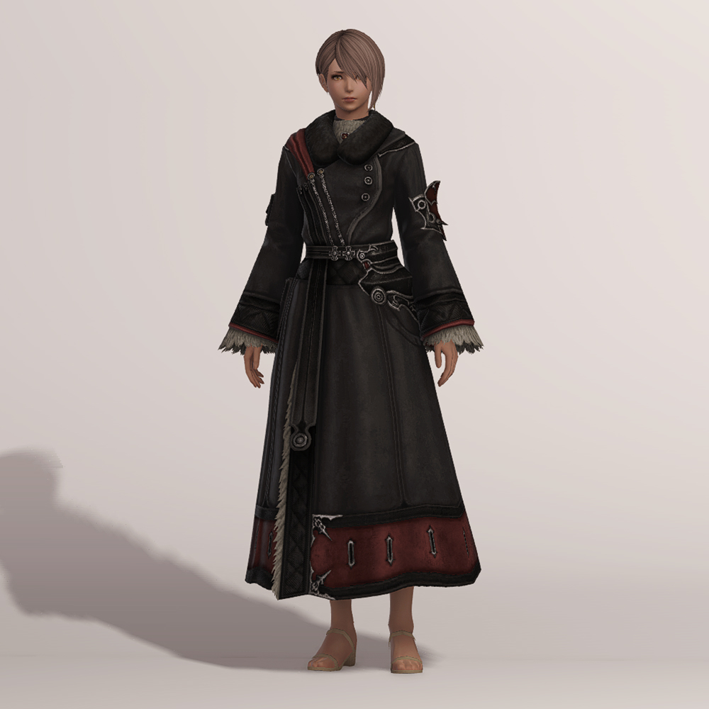 고위 간부 또는 귀족이 입을법한 느낌의 고급스러운 벨트핏 가죽 롱코트입니다. 제국 옷이라고 말하지 않으면 모를 정도로 디자인과 핏이 깔끔하며, 빙결의 포효를 맞아도 얼지 않을 것 같은 느낌이 들 정도로 두툼하고 따뜻해 보입니다. 부츠나 장화와 매치해 코디하면 올겨울도 따뜻하게 지낼 수 있습니다.
