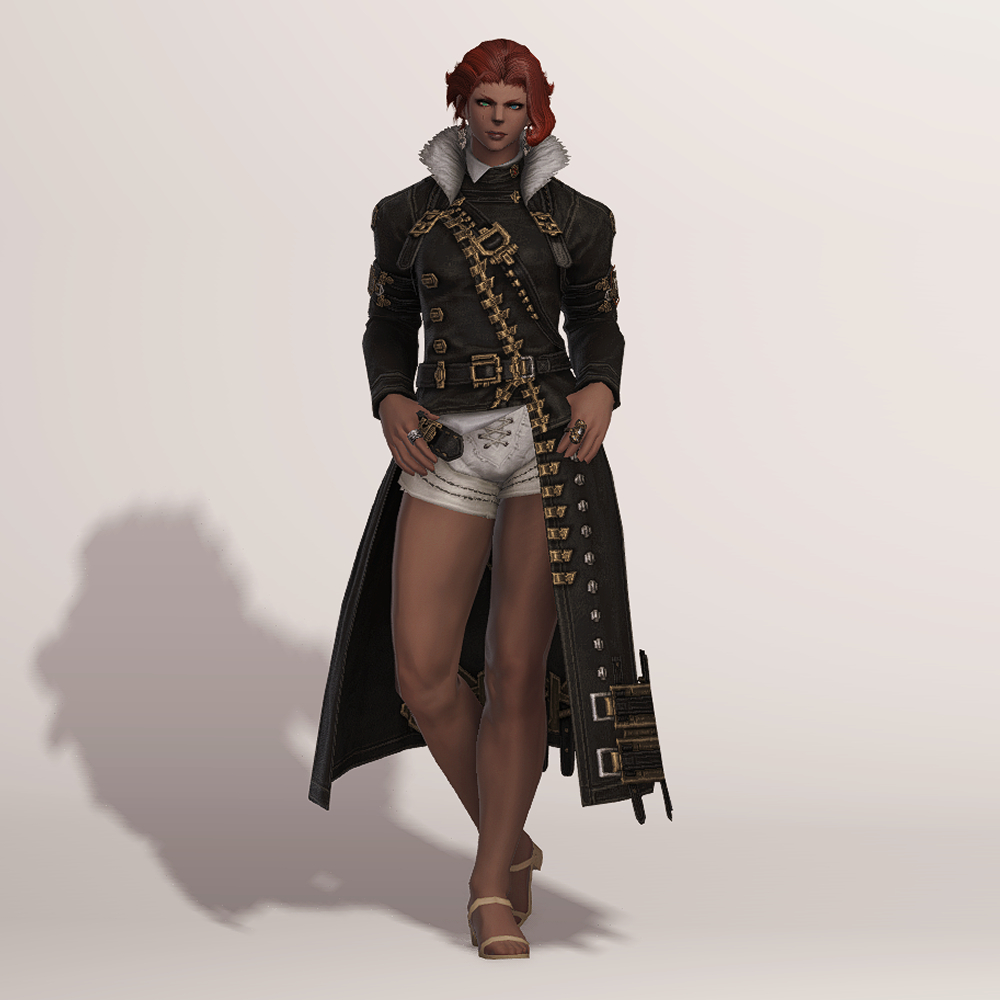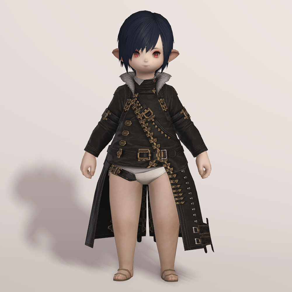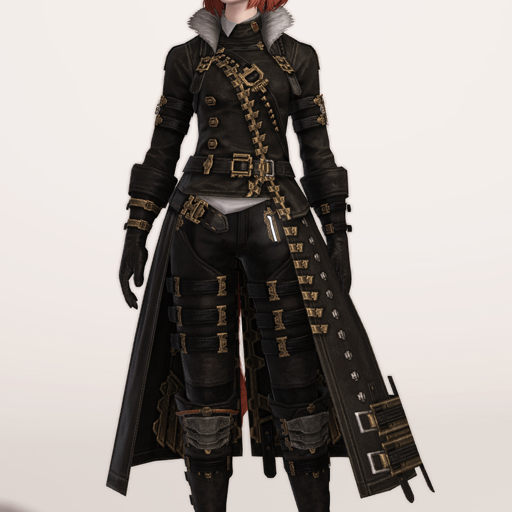 충절의 긴바지 정도는 아니지만 마찬가지로 곳곳의 벨트가 눈에 띄는 가죽 재질의 건브레이커 상의입니다. 전체적으로 핏이 좋으며, 포인트로 들어간 다양한 모양의 금속들이 한데 어우러져 전체적으로 화려하면서도 고급스럽습니다. 건메탈색으로 염색하면 가죽 반사광이 좀 더 살아납니다.