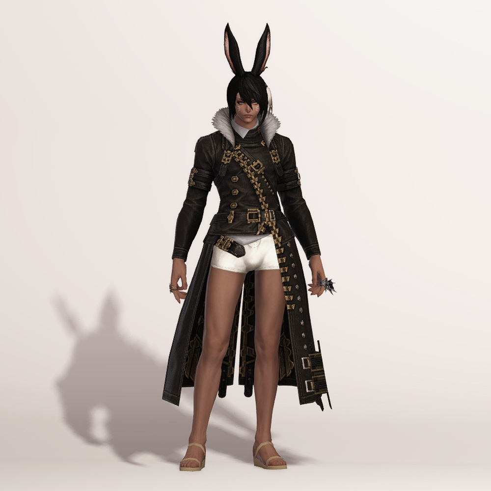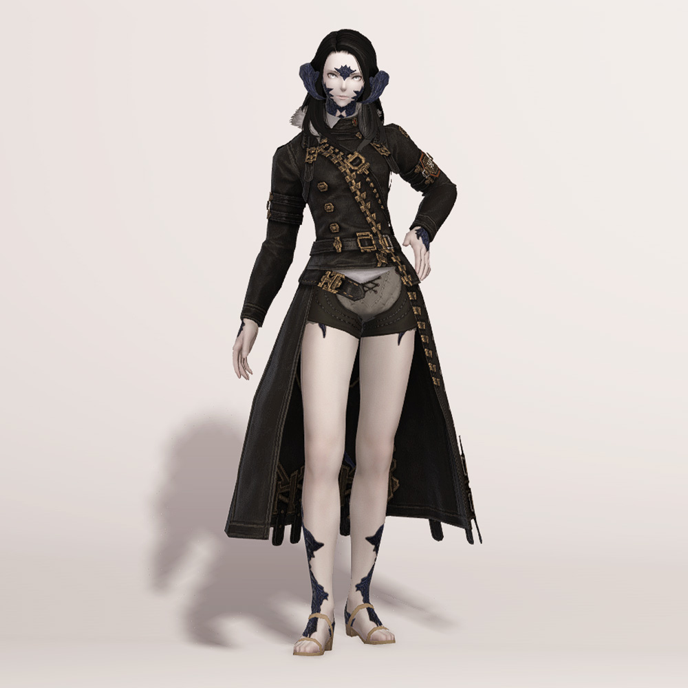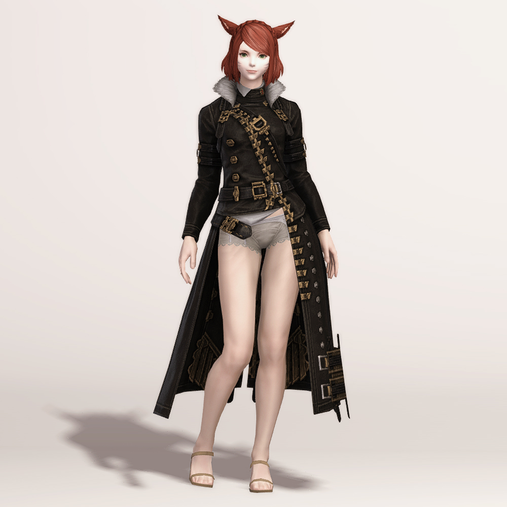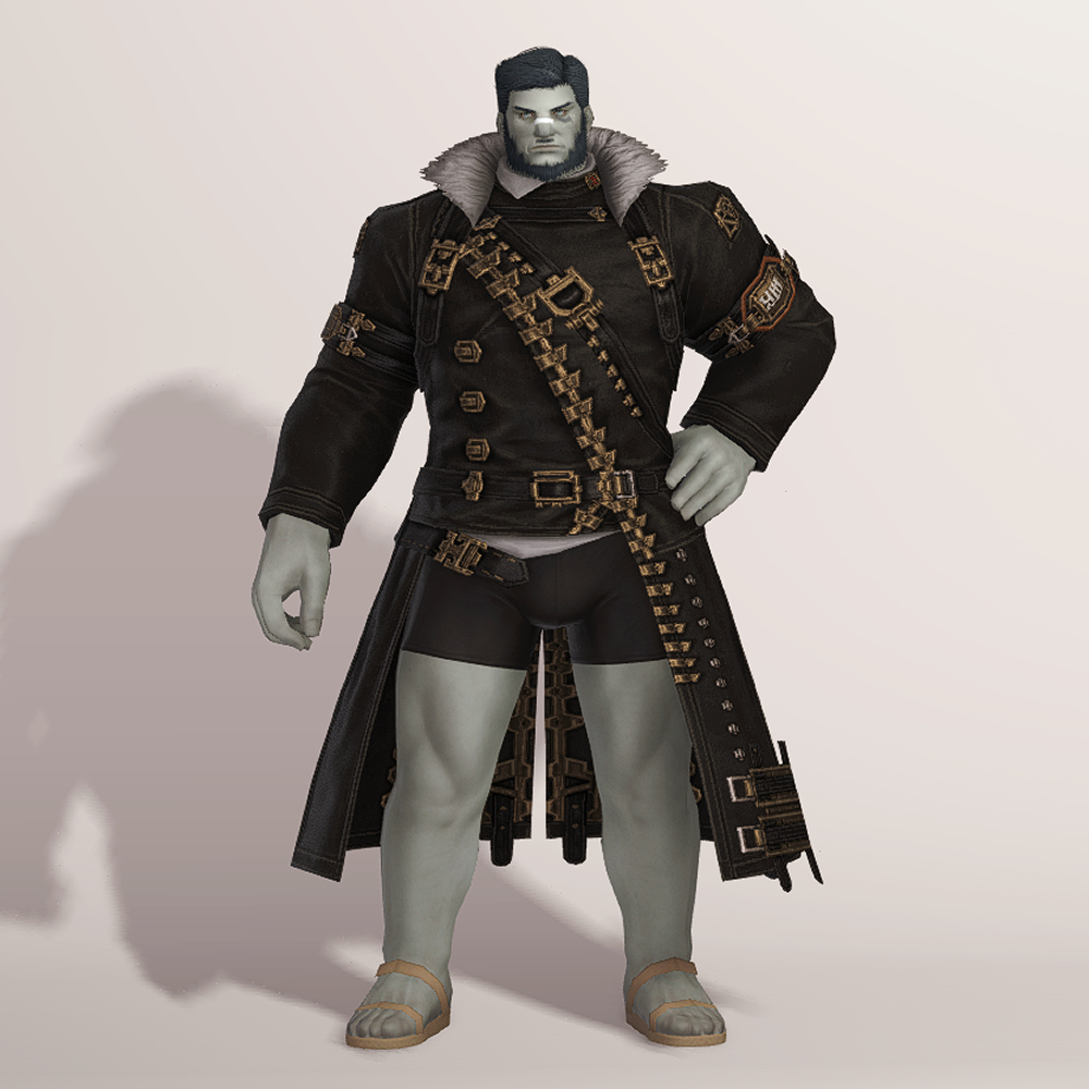 충절의 긴바지 정도는 아니지만 마찬가지로 곳곳의 벨트가 눈에 띄는 가죽 재질의 건브레이커 상의입니다. 전체적으로 핏이 좋으며, 포인트로 들어간 다양한 모양의 금속들이 한데 어우러져 전체적으로 화려하면서도 고급스럽습니다. 건메탈색으로 염색하면 가죽 반사광이 좀 더 살아납니다.