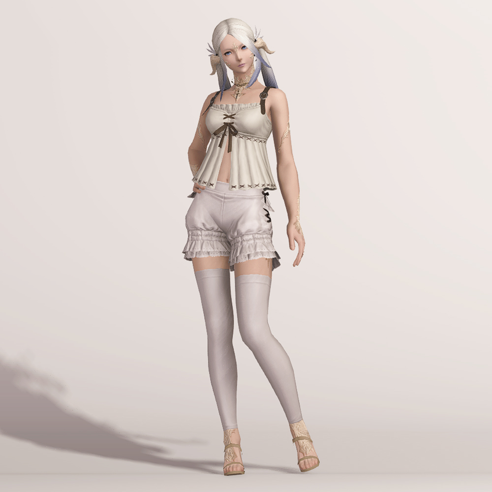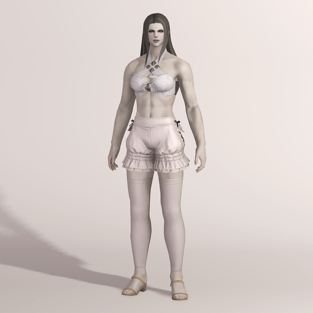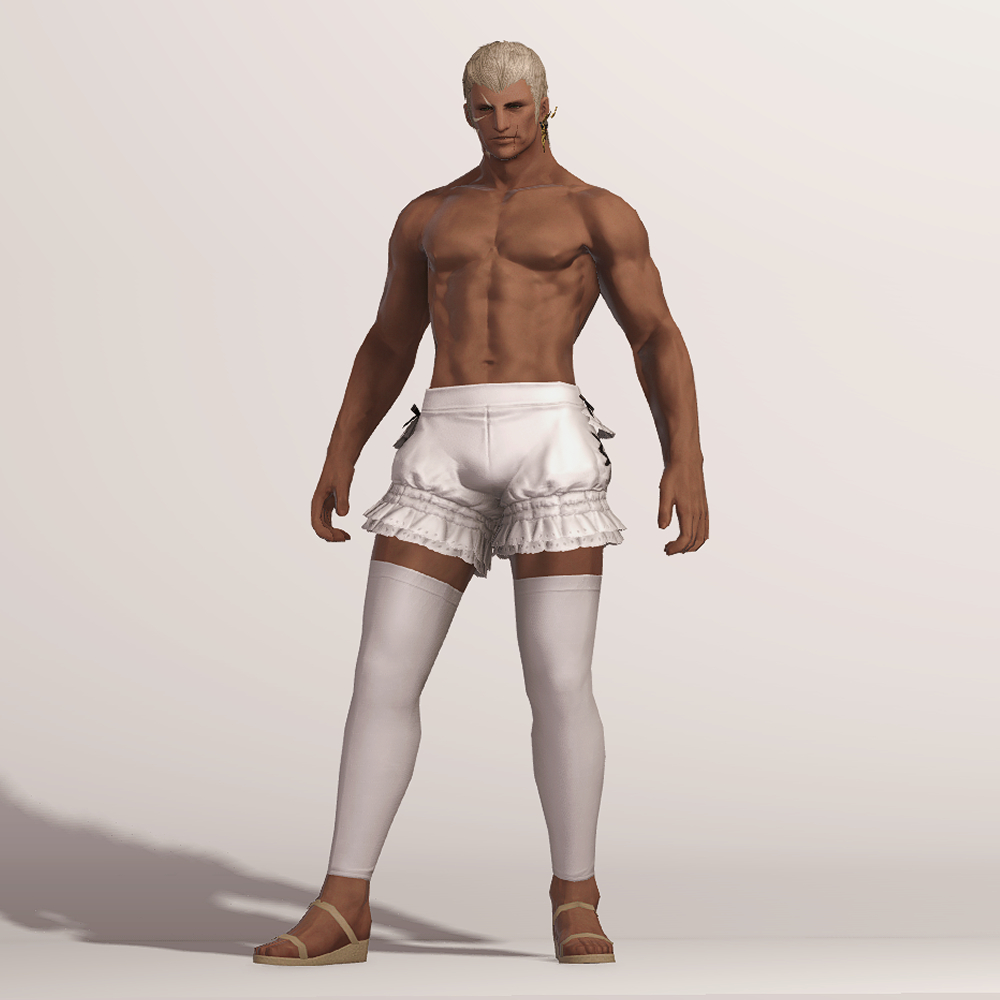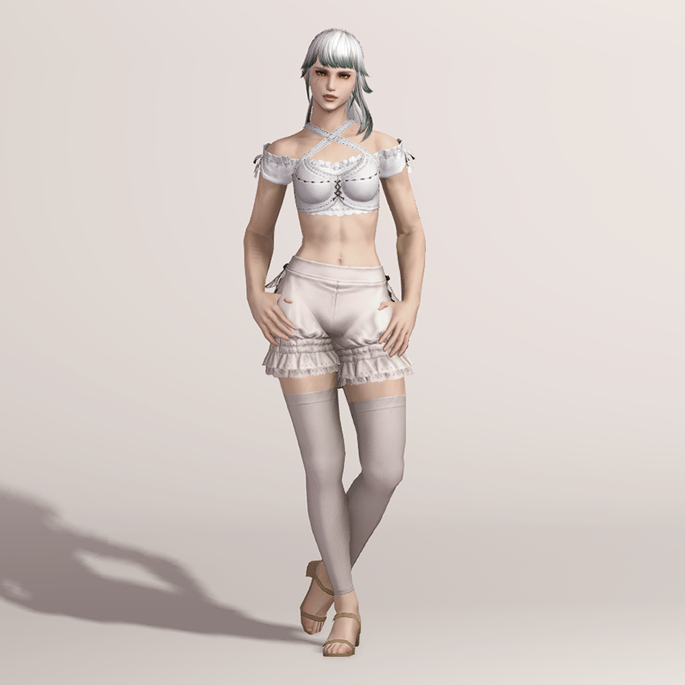 빵실한 호박 바지와 오버니삭스의 조합을 만나볼 수 있는 귀여운 하의입니다. 모든 메이드복 아이템이 그렇듯이 마찬가지로 양옆 사이드에 포인트로 리본이 부착되어 있으며, 밑단이 프릴 레이스로 정말 귀엽습니다. 평범하게 속바지로 입어도 좋지만 집사 재킷, 잃어버린 도적 외투, 빛의 블라우스 등.... 다양한 상의와 매치할 수 있는 매력적인 하의입니다.