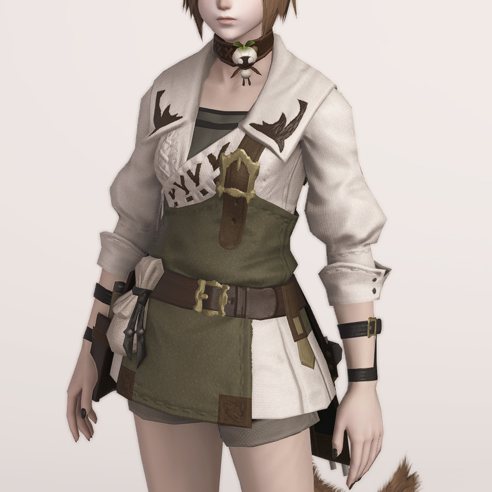 깔끔한 디자인의 목수 상의입니다. 가죽과 천의 조합으로 일반적인 상의보다 살짝 길어 신이슈가르드 유격대 하의처럼 짧은 속바지 느낌의 하의와 매치하면 잘 어울립니다. 목수 옷 아니랄까 봐 보는 사람을 기준으로 왼쪽 주머니에 못이나 나사를 담을 수 있는 작은 주머니와 조각도, 허리 뒤쪽에는 망치 등이 있습니다. 목수 장갑과 매치해도 좋지만 집사왕 반장갑도 굉장히 잘 어울립니다.