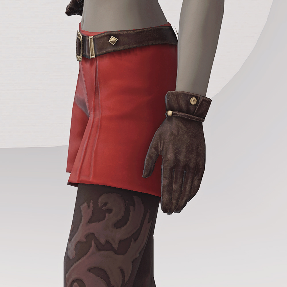 사용감이 느껴지는 두툼한 가죽 재질의 적마도사 장갑입니다. 심플한 디자인에 금색 단추 같은 장식을 포인트로 넣어줬습니다. 건메탈색으로 염색하면 가죽 반사광이 좀 더 살아납니다.