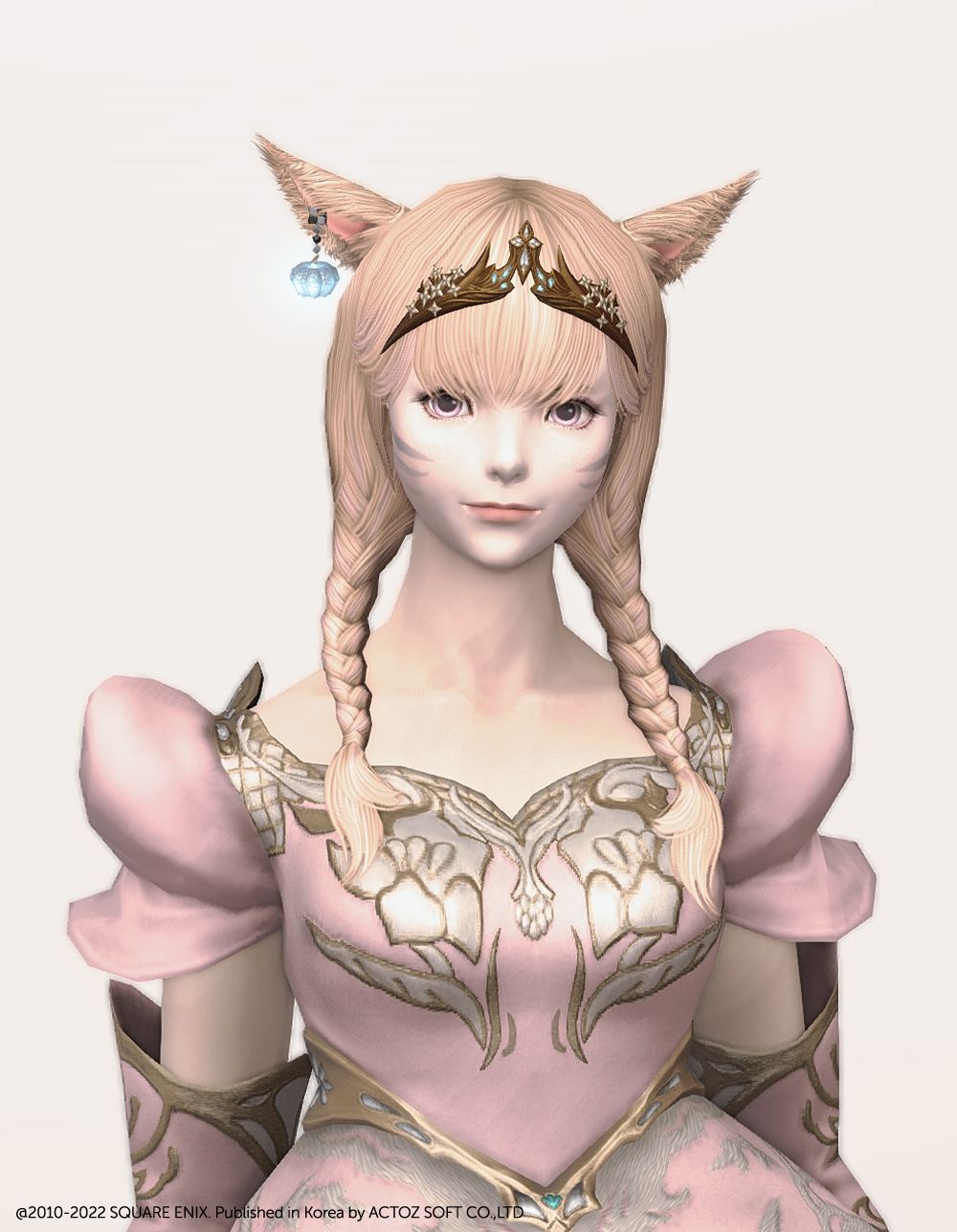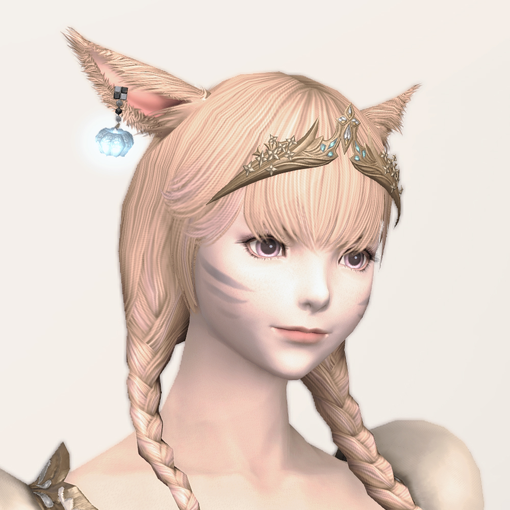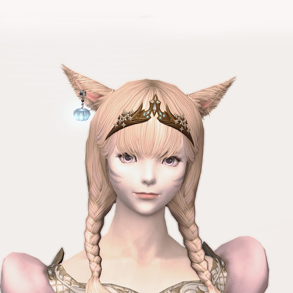 파판14엔 다양한 왕관이 있지만 그에 비에 원앤온리 유일하게 존재하는 티아라입니다. 고급스러운 디자인에 콕콕 박혀있는 보석들이 귀엽습니다. 워낙 예쁘게 디자인되어 다양하게 활용할 수 있으며 머리가 허전할 때 쓰면 딱입니다.