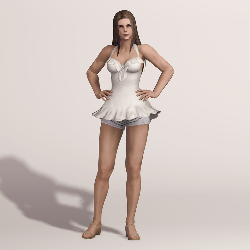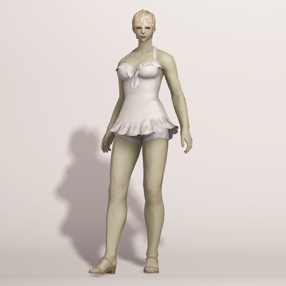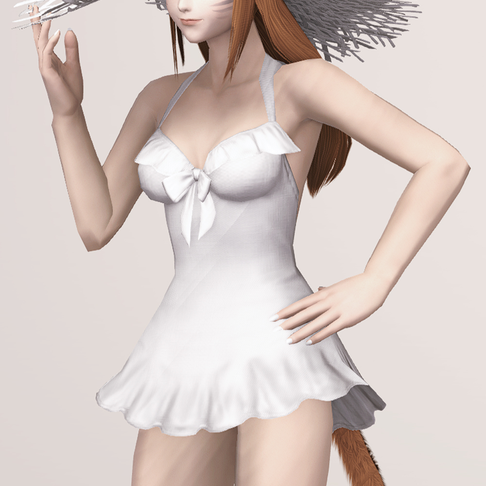 시원한 남쪽 바다의 심플하면서도 스타일리쉬한 홀터넥 원피스 수영복입니다. 가슴 쪽의 프릴과 리본이 포인트로 귀엽게 들어갔으며 차양모자, 여름불꽃 모자 등과 조합하면 여름 느낌이 물씬 느껴집니다. 시스이 치유사 하의(여)와 매치하는 것도 추천드립니다.