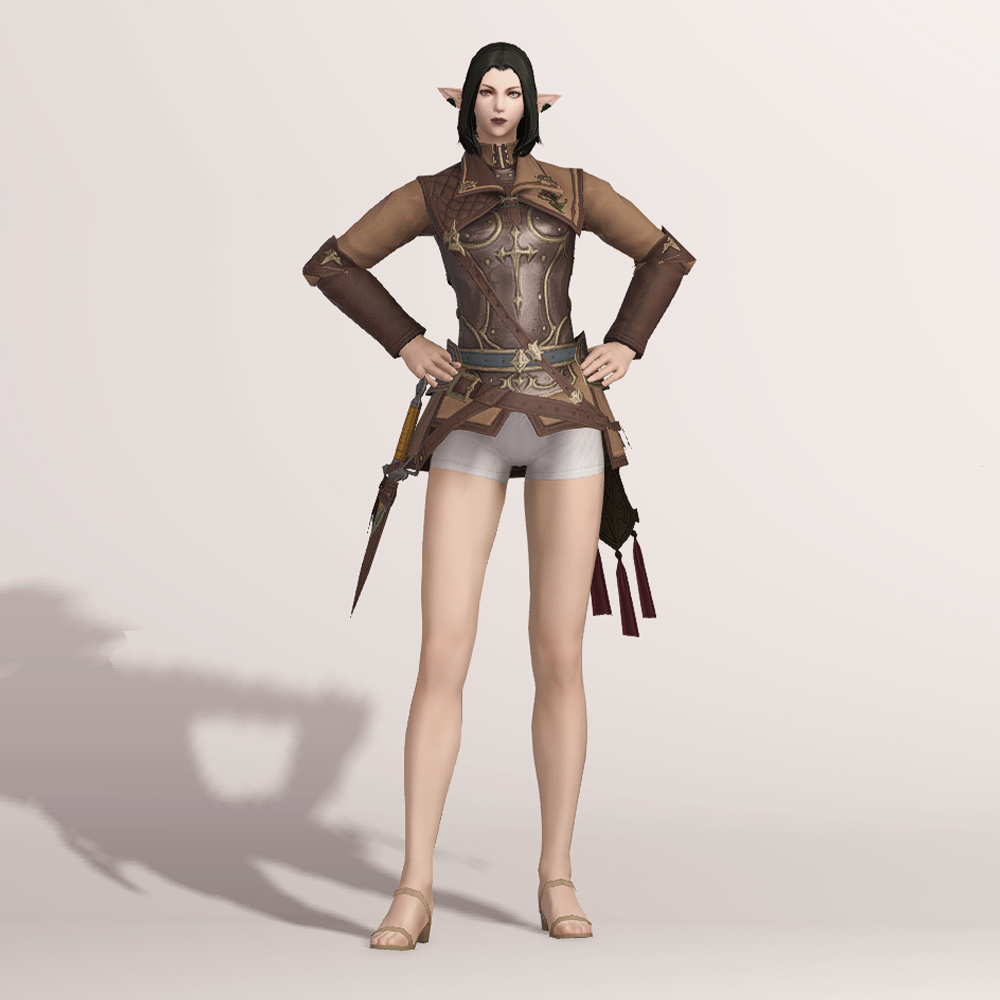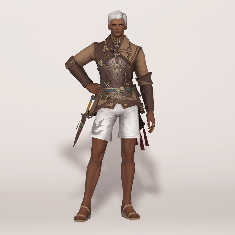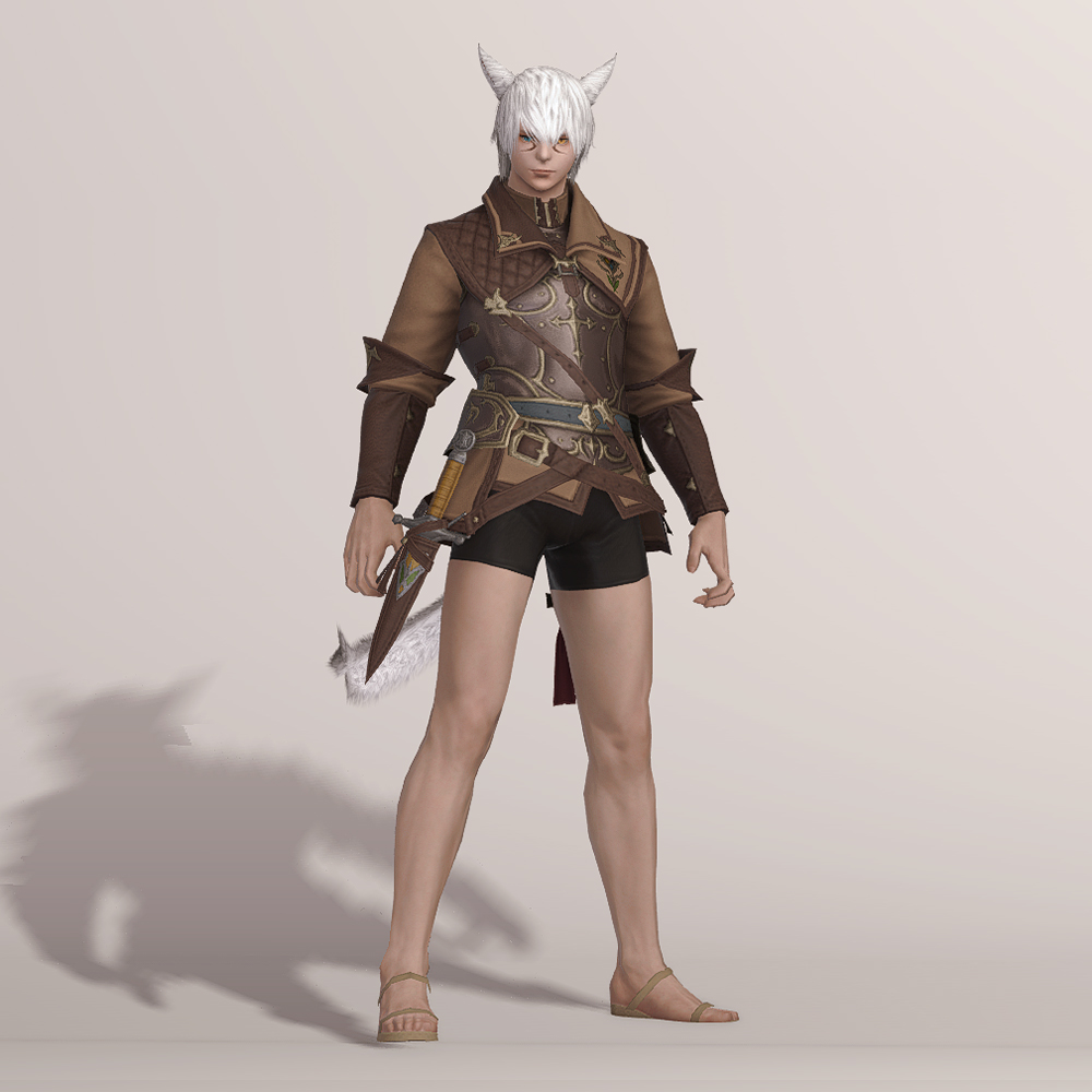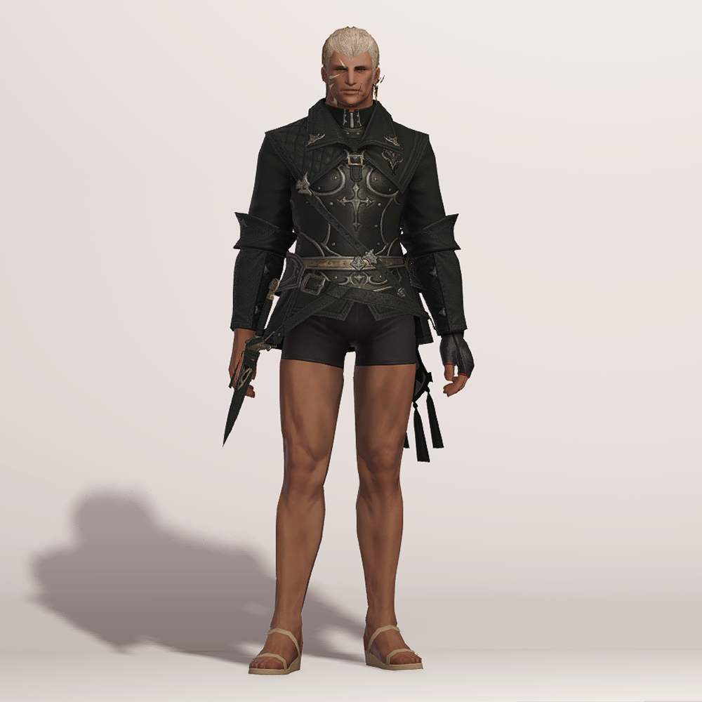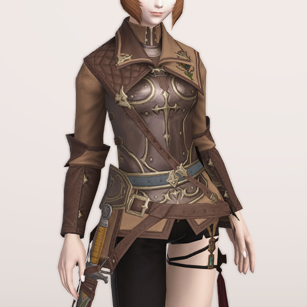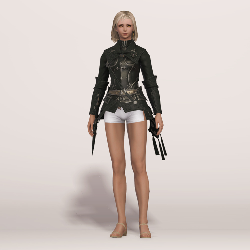 성별/종족 불문 모두에게 잘 어울리는 상의입니다. 가죽과 천, 금속의 조합으로 보는 사람을 기준으로 왼쪽 허리~허벅지에 작은 단검이 눈에 띕니다. 수호자 외투와 외형을 공유하지만 유격대 재킷은 허리 아래의 천과 장식이 생략된 짧은 재킷으로 전체적으로 깔끔한 핏을 자랑하면서도 제복스러운 느낌이 들어 상대적으로 인기와 선호도가 높습니다.