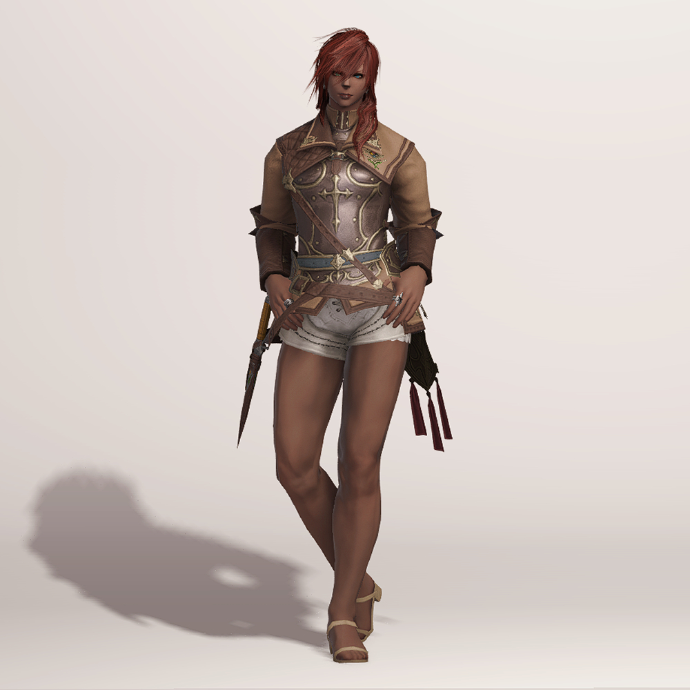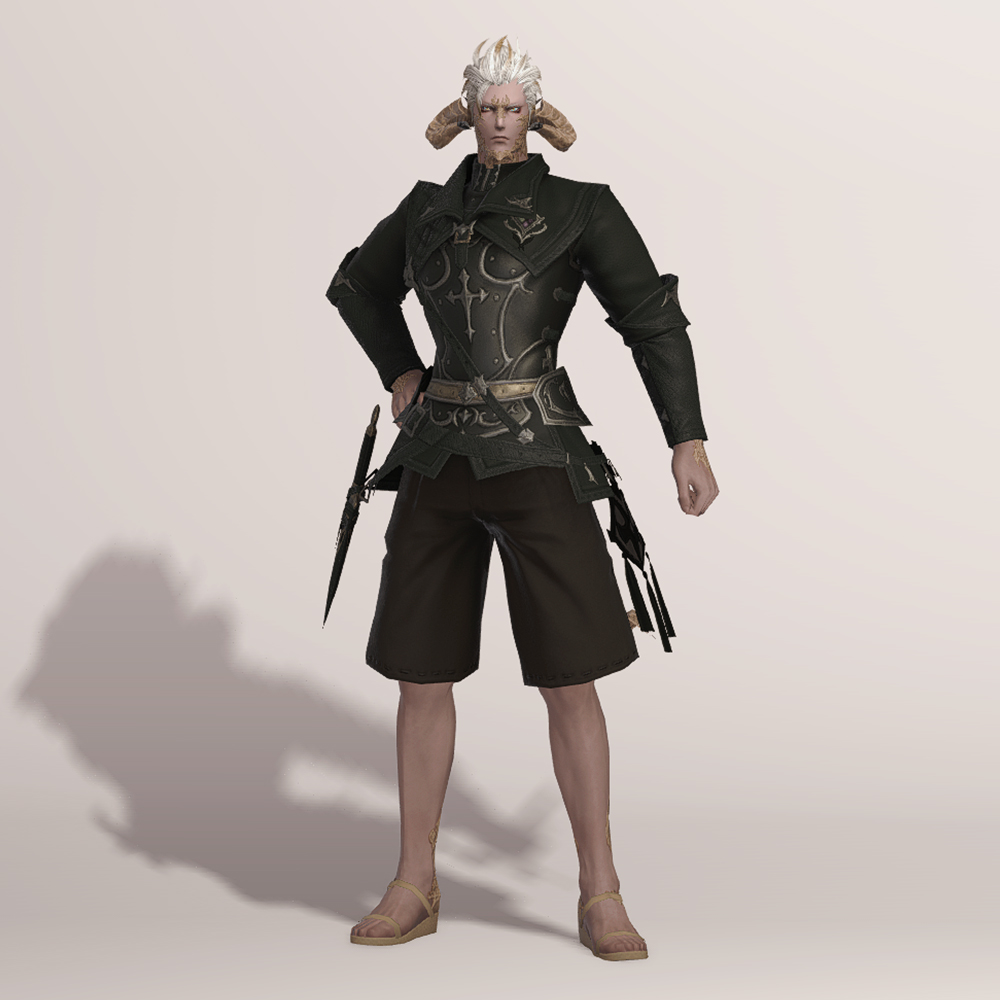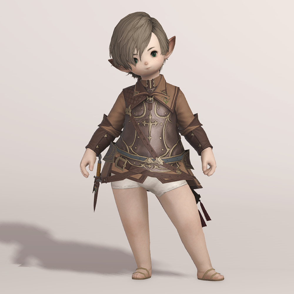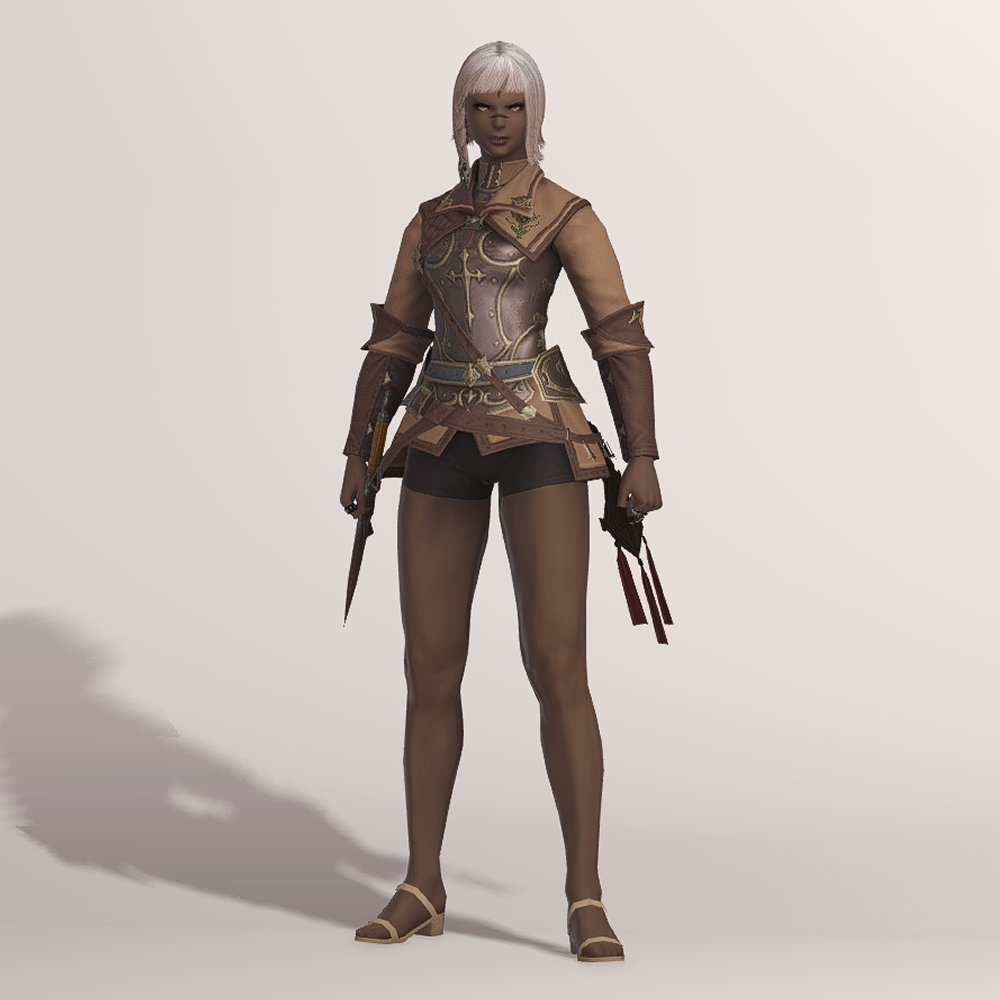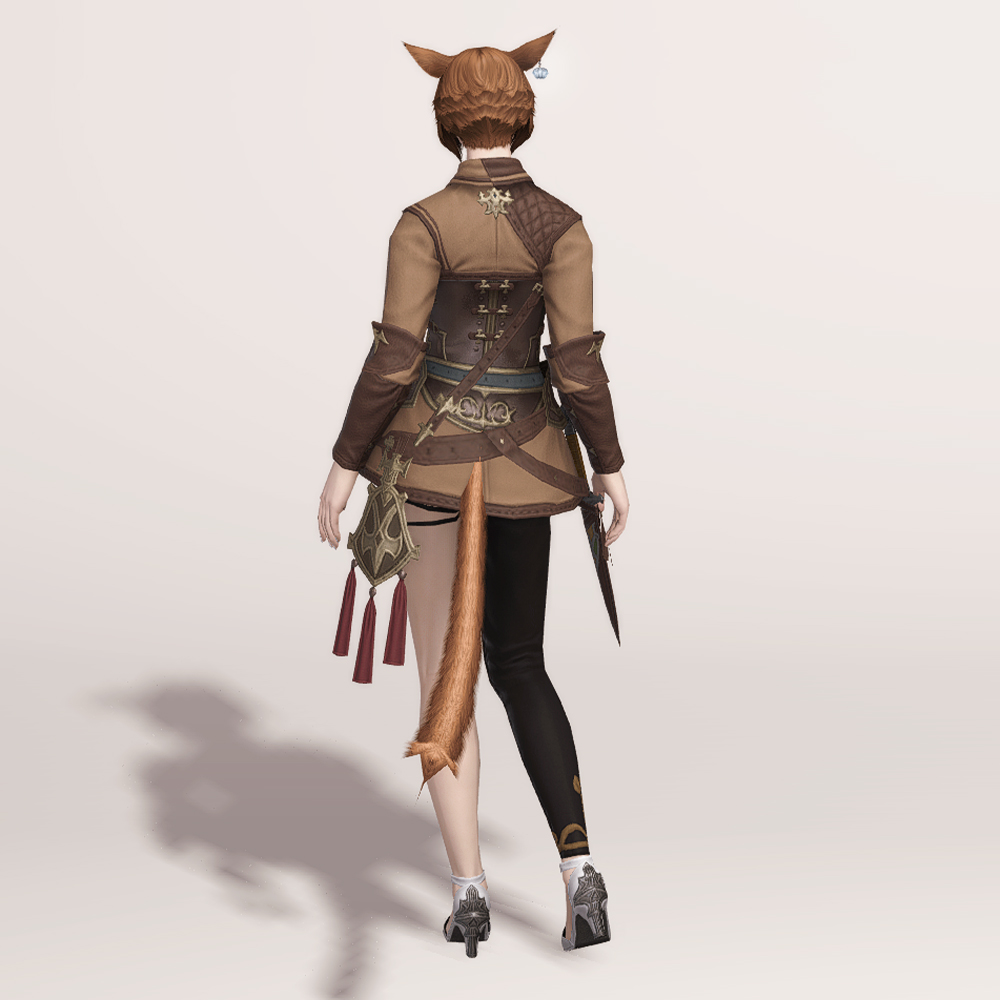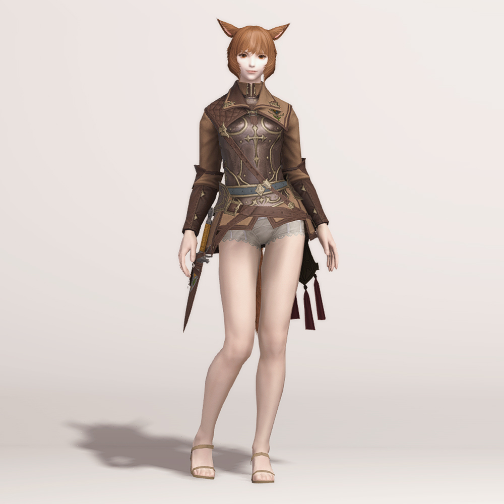 성별/종족 불문 모두에게 잘 어울리는 상의입니다. 가죽과 천, 금속의 조합으로 보는 사람을 기준으로 왼쪽 허리~허벅지에 작은 단검이 눈에 띕니다. 수호자 외투와 외형을 공유하지만 유격대 재킷은 허리 아래의 천과 장식이 생략된 짧은 재킷으로 전체적으로 깔끔한 핏을 자랑하면서도 제복스러운 느낌이 들어 상대적으로 인기와 선호도가 높습니다.