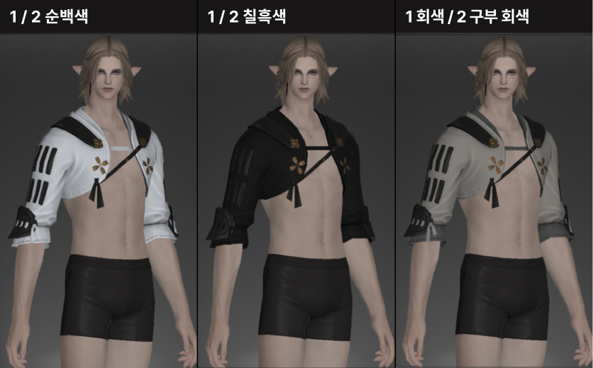 1염색 - 전체적인 상의 천 / 2염색 - 팔과 목 마감 장식
