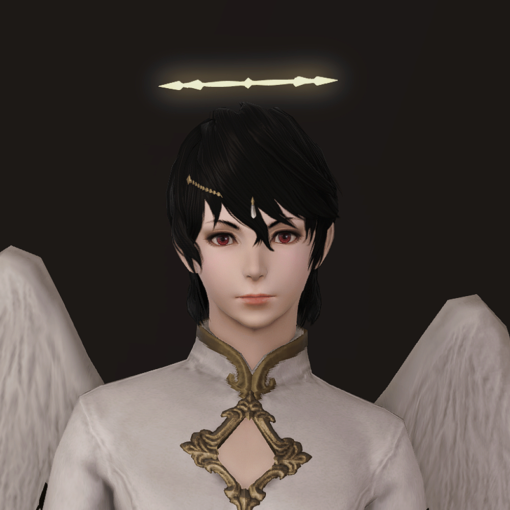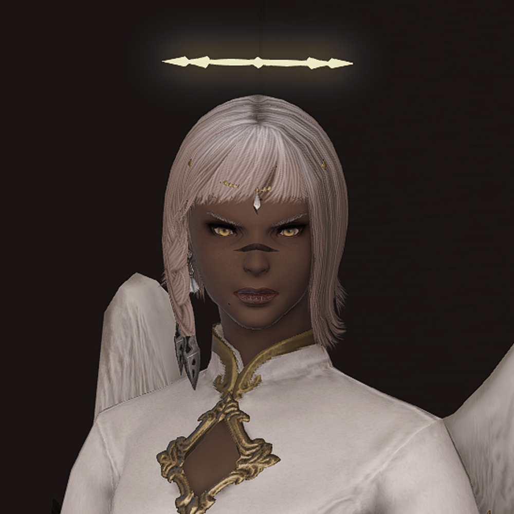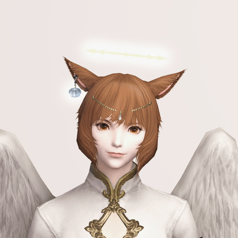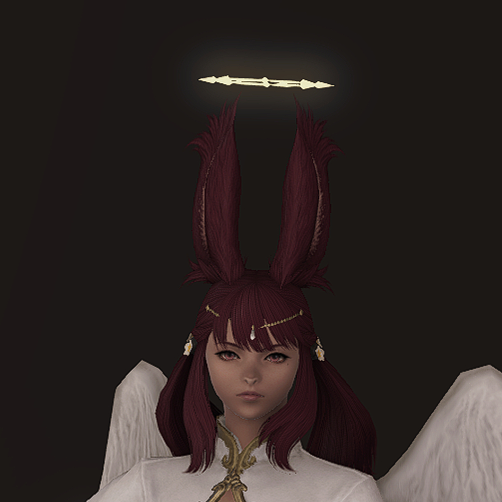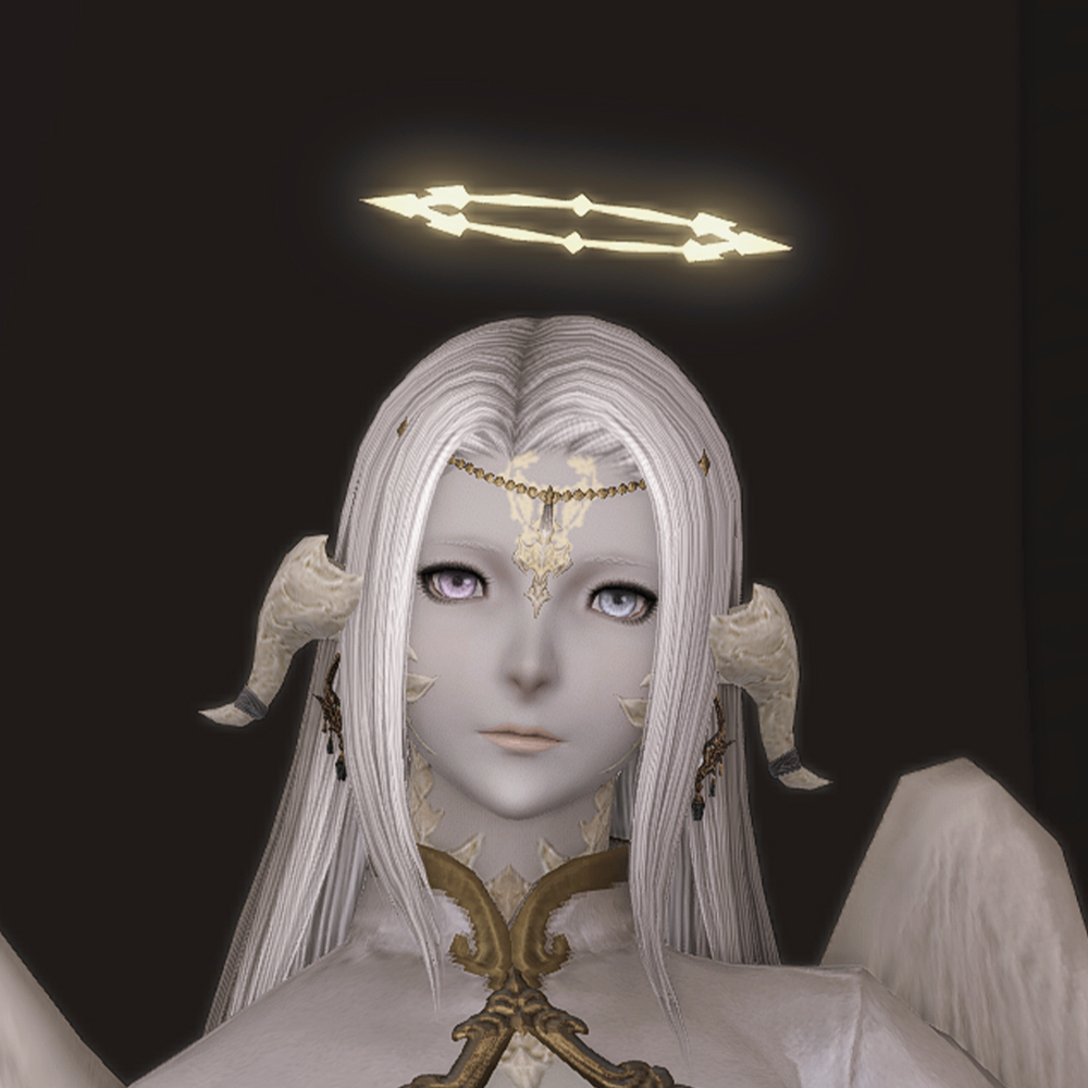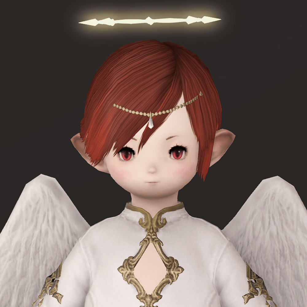 머리 위에 떠있는 원형 장식 천사링입니다. 일반적인 천사링과 다르게 단순한 원형 모양이 아닌 광륜처럼 뻗어있으며 끝이 날카롭습니다. 이마의 체인 장식은 앞머리가 있는 경우 묻히거나 뚫고 나옵니다.