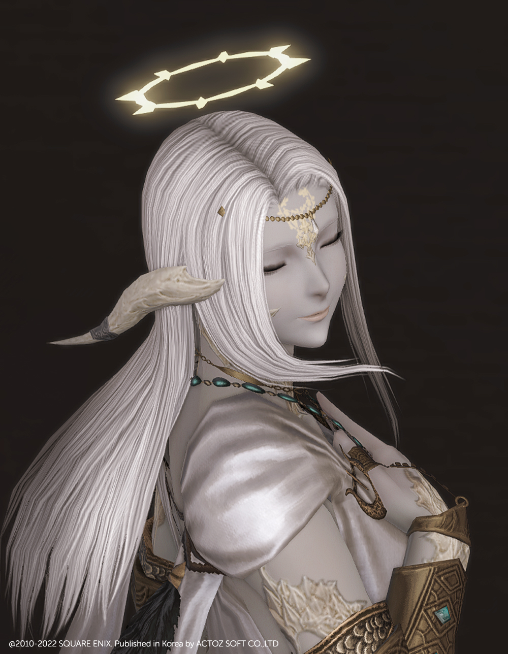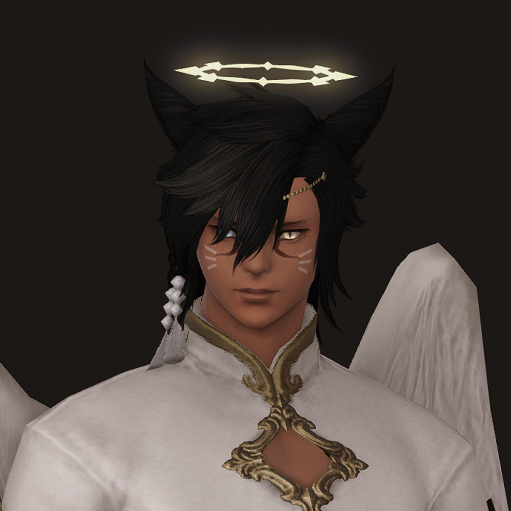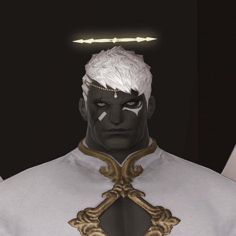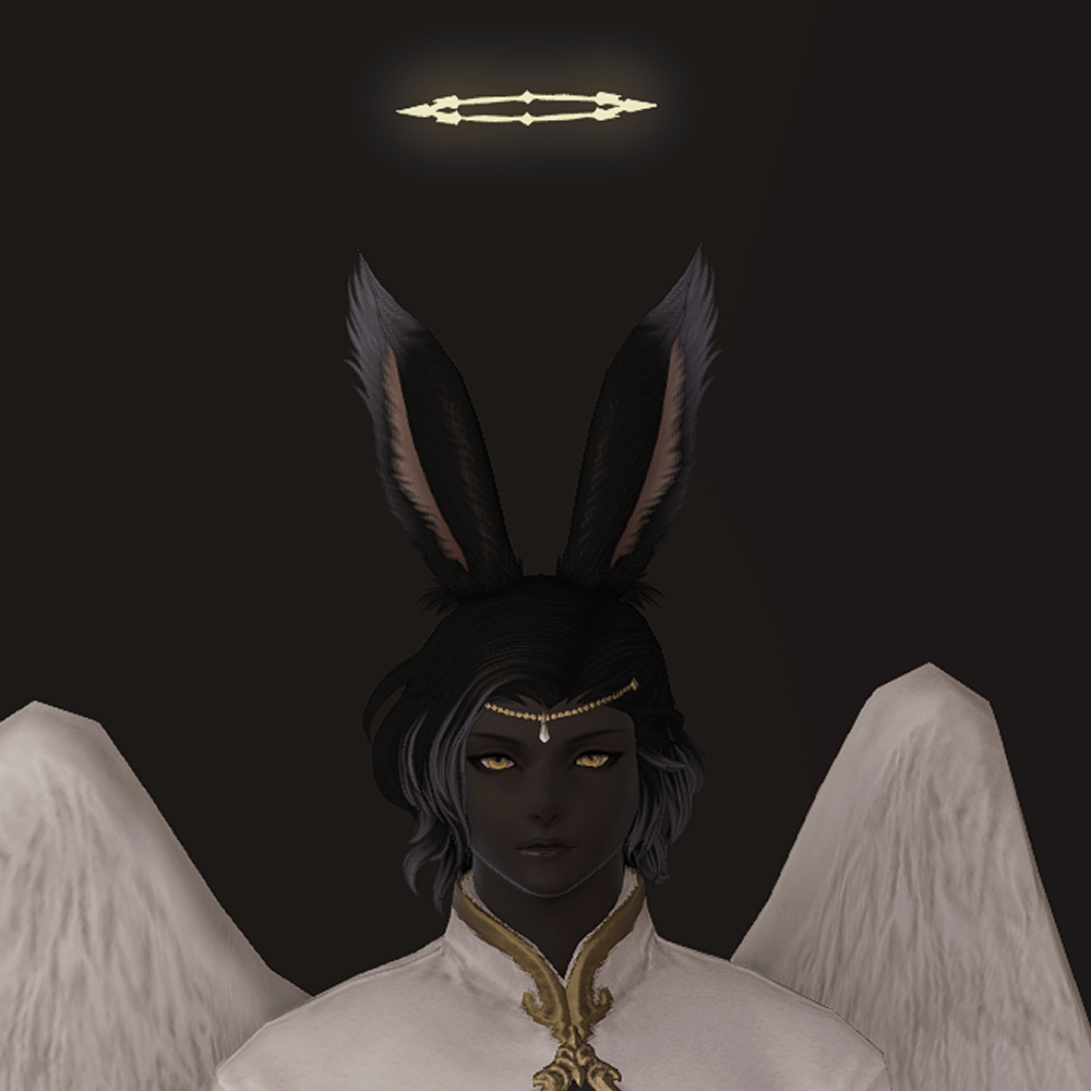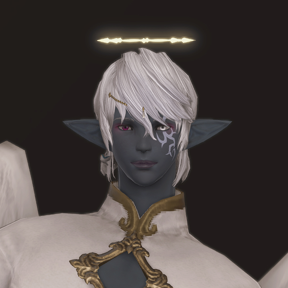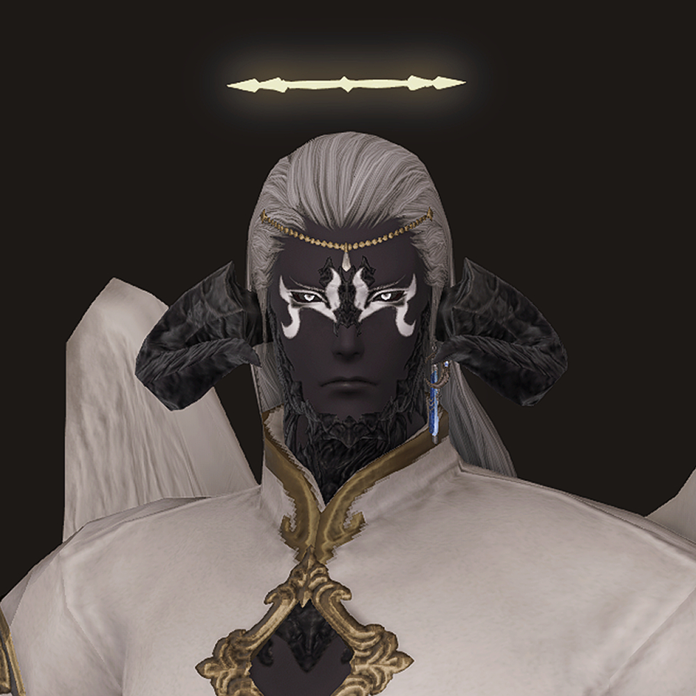 머리 위에 떠있는 원형 장식 천사링입니다. 일반적인 천사링과 다르게 단순한 원형 모양이 아닌 광륜처럼 뻗어있으며 끝이 날카롭습니다. 이마의 체인 장식은 앞머리가 있는 경우 묻히거나 뚫고 나옵니다.