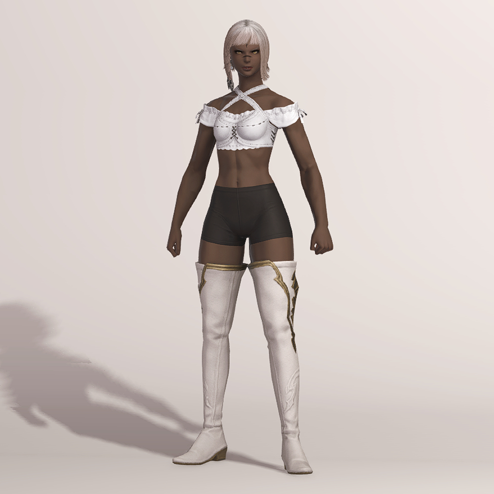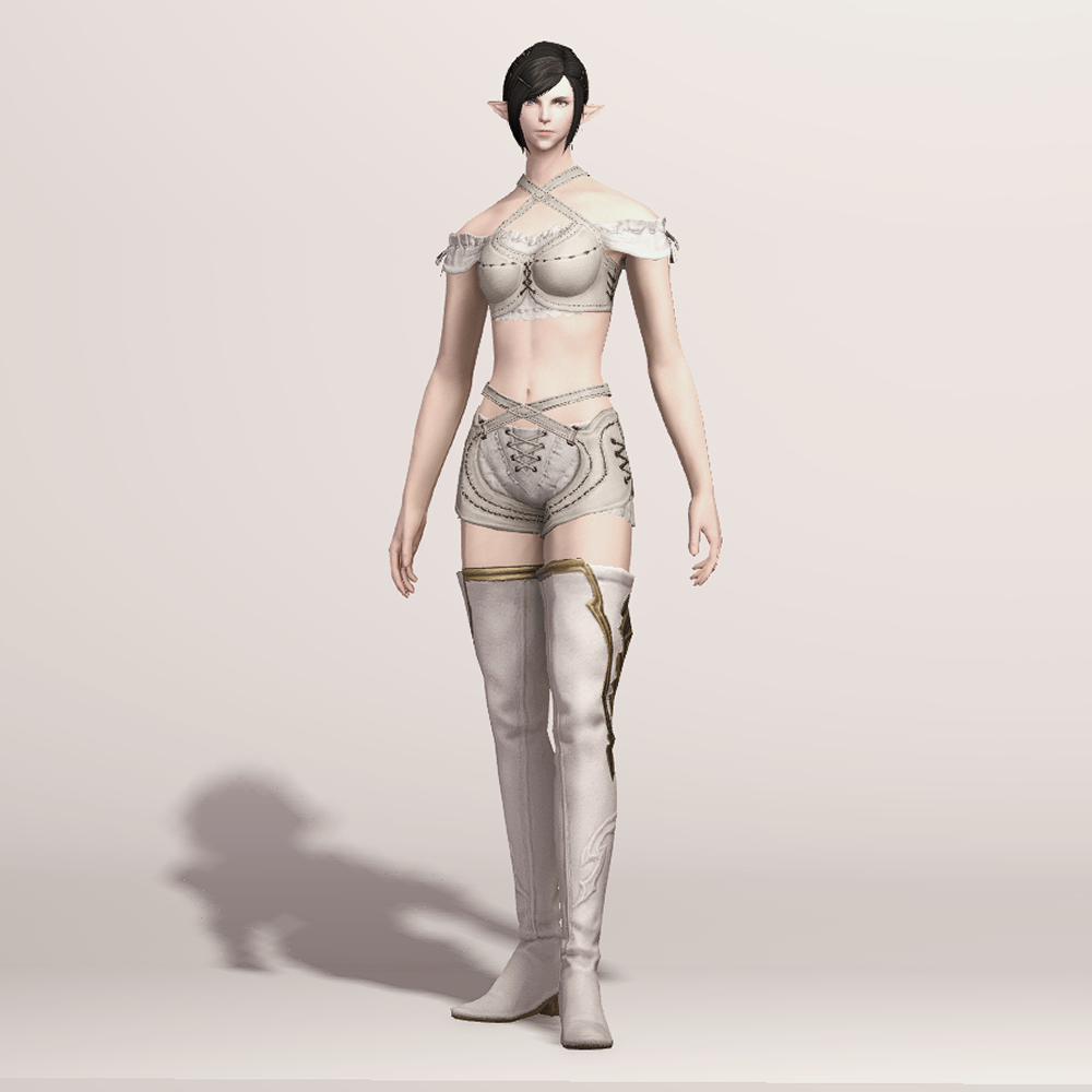 깔끔한 핏을 자랑하는 오버니부츠입니다. 보석공방 가운, 수정공 마술사 외투 등 옷에 금속 장식이 포함되어 있는 상의와 매치하면 잘 어울립니다. 악마의 허벅지장화와 거의 비슷하나 라인장식의 차이가 있습니다.