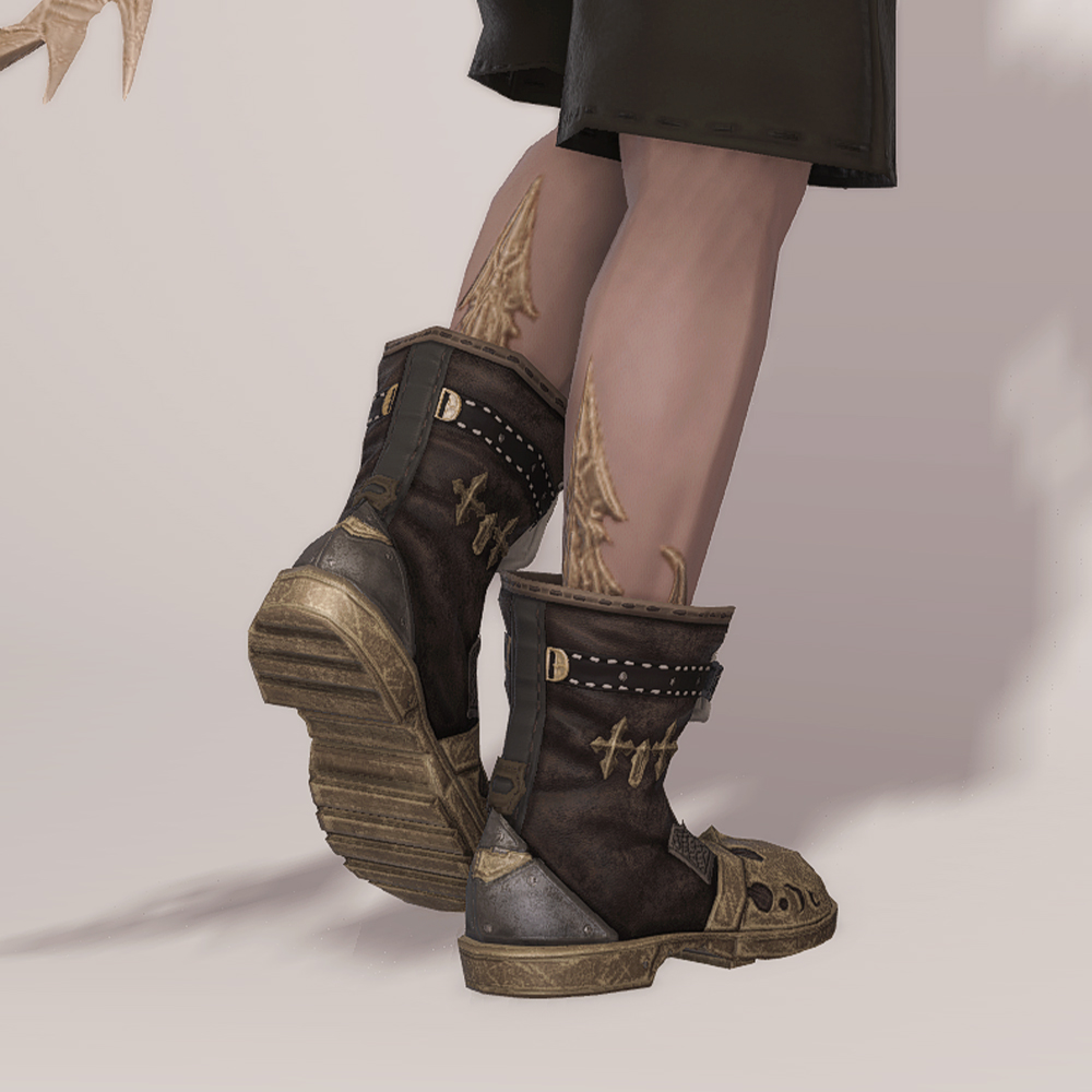 송아지 가죽 라이더 모자처럼 사용감이 느껴지는 아이템이 종종 있는데, 대부분 염색을 하면 사라지던가 연해지는 편이지만 제련학자 장화는 오히려 도드라져 장인이 걸어온 길은 지울 수 없다는 것을 보여줍니다.