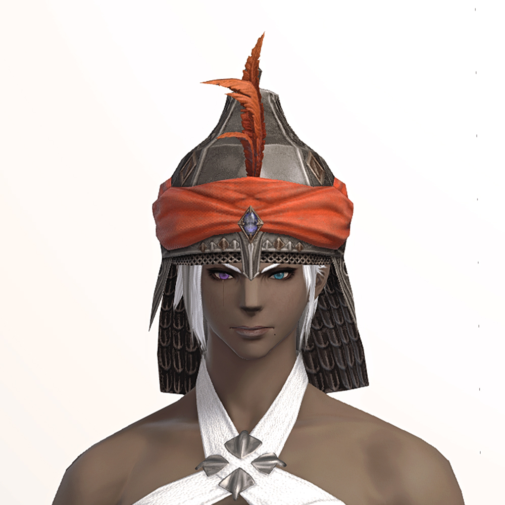팔라카 풍의 터번+깃털+투구의 조합으로, 각잡힌 정예병이 물씬 나는 투구입니다.