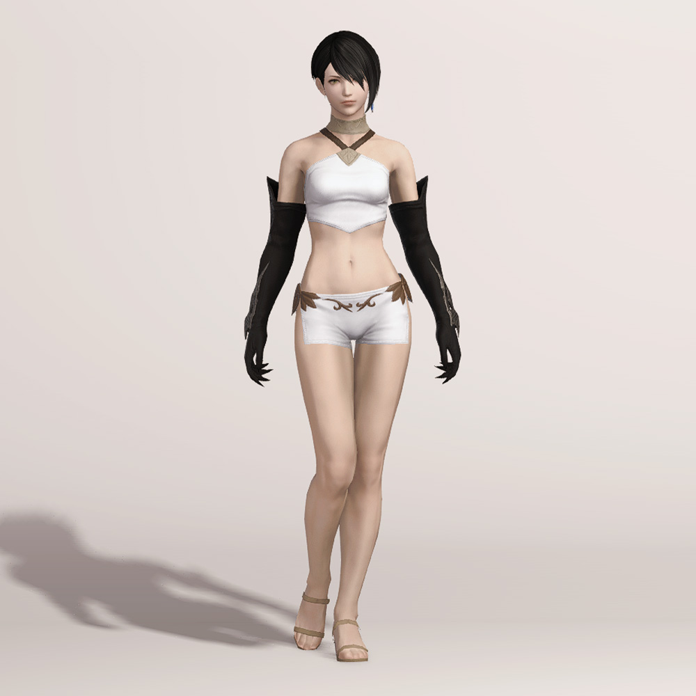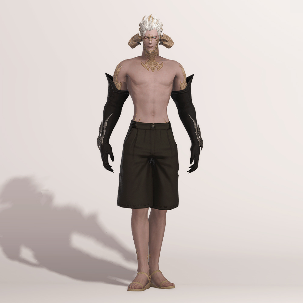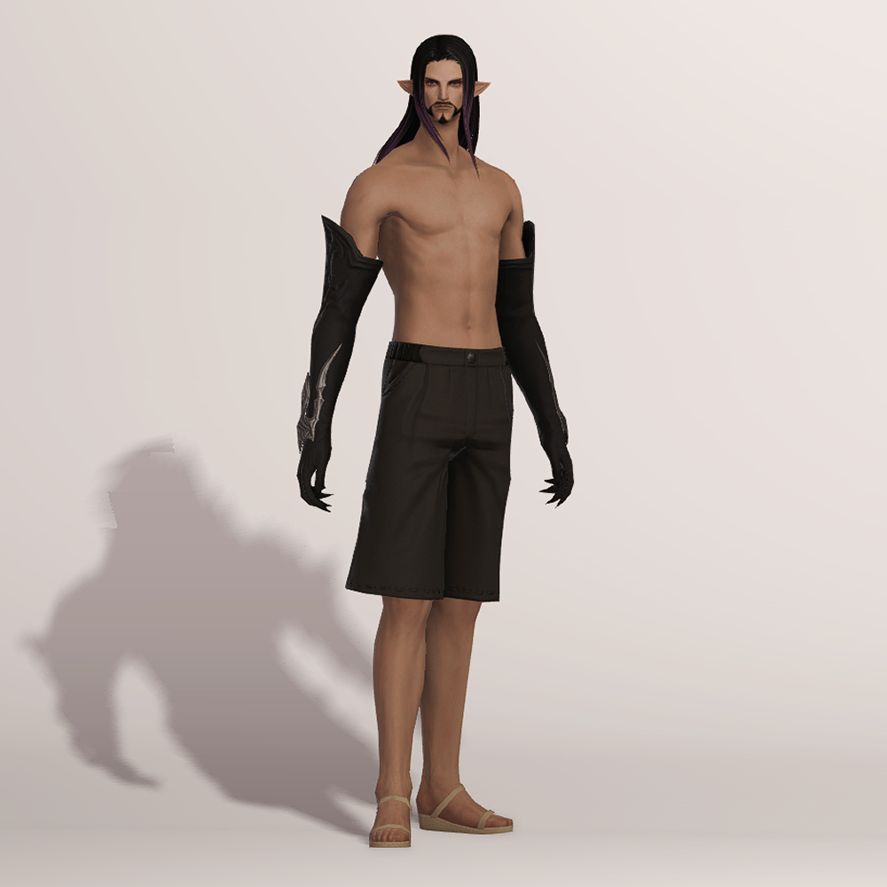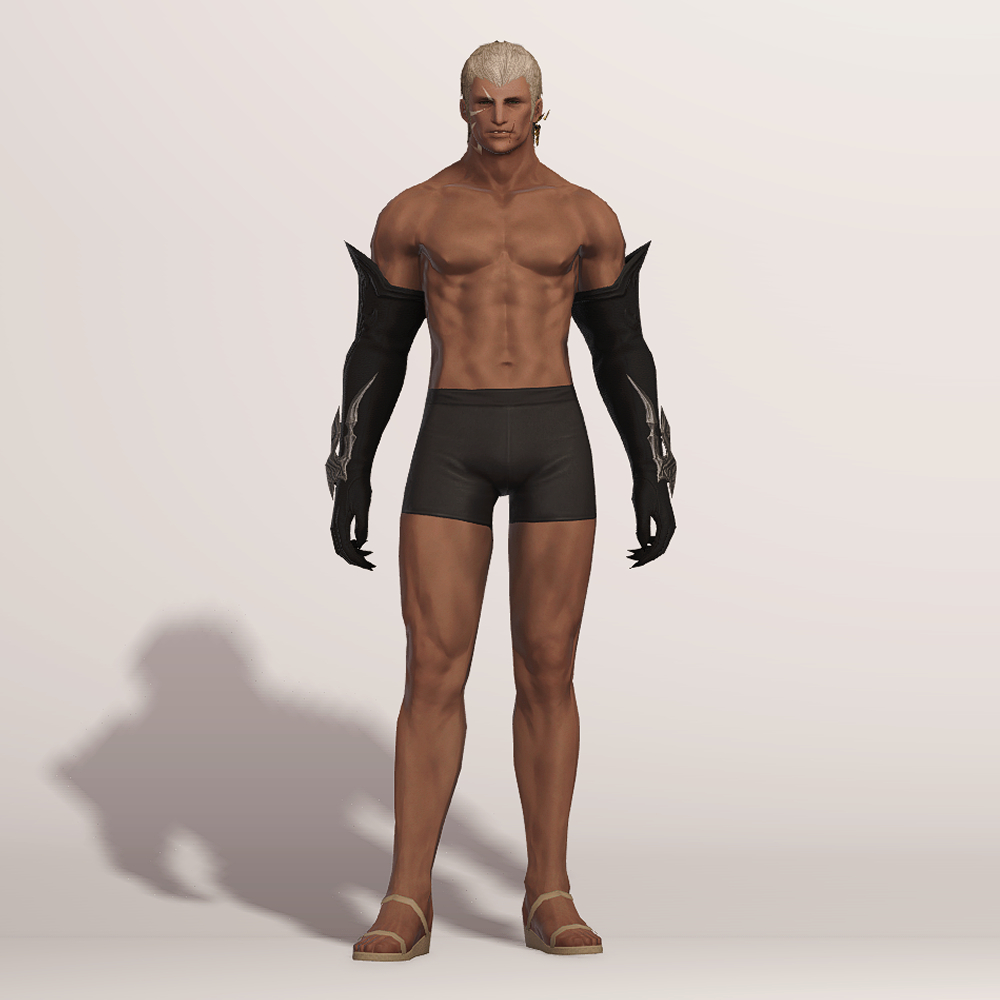 팔뚝까지 오는 긴 장갑입니다. 아래팔부터 시작해 손목까지 이어져 있는 금속 장식은 날카롭고 정교합니다. 특이하게도 손가락 끝이 뾰족하며 밝은 색상으로 염색해 확인해 보면 그을린 것처럼 검습니다.